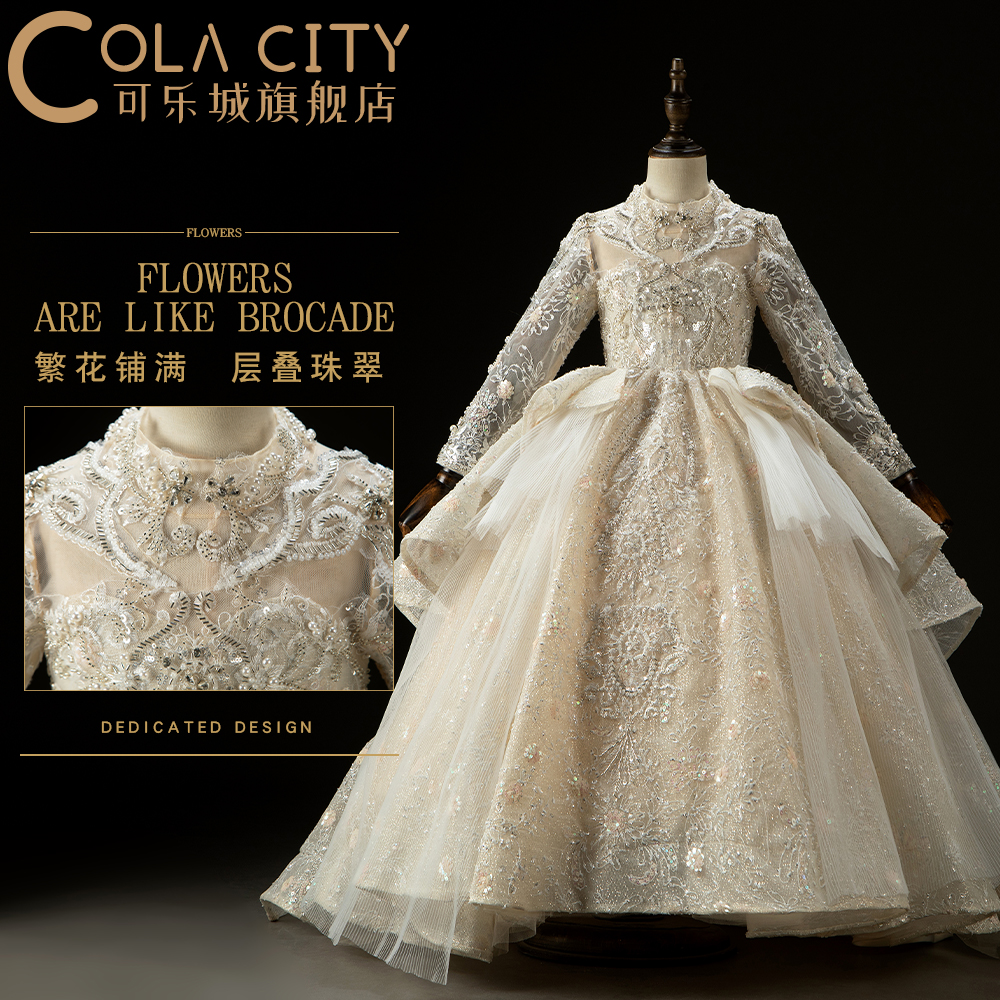 女童公主长裙礼服生日宴会女孩主持人钢琴演出个性 T台走秀晚礼服