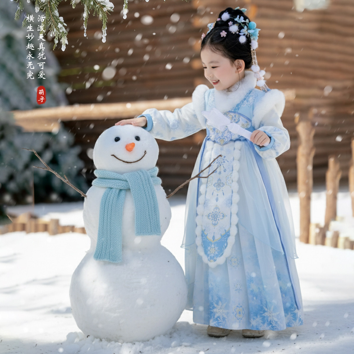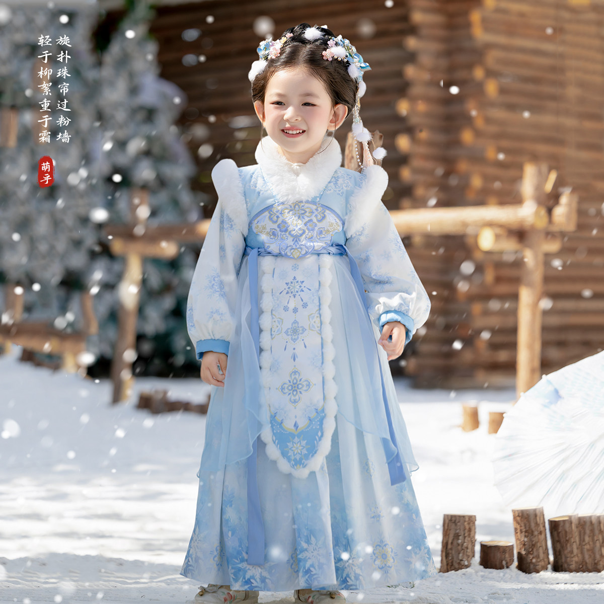 汉服女童秋冬2025新款 儿童中国风超仙古风加绒连衣裙女孩公主襦裙