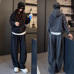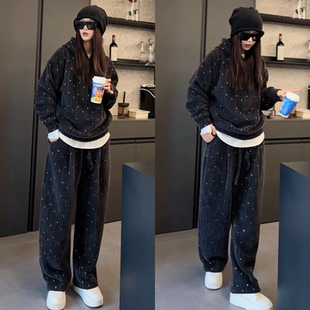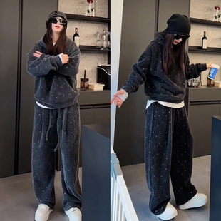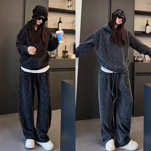 秋季 冬季 加厚毛感套装 彩织连帽卫衣休闲裤 两件套 男女款 直播间同款