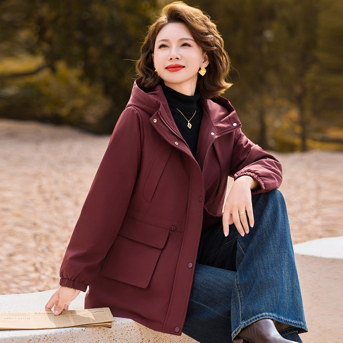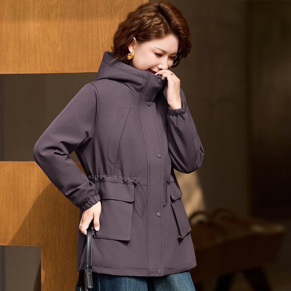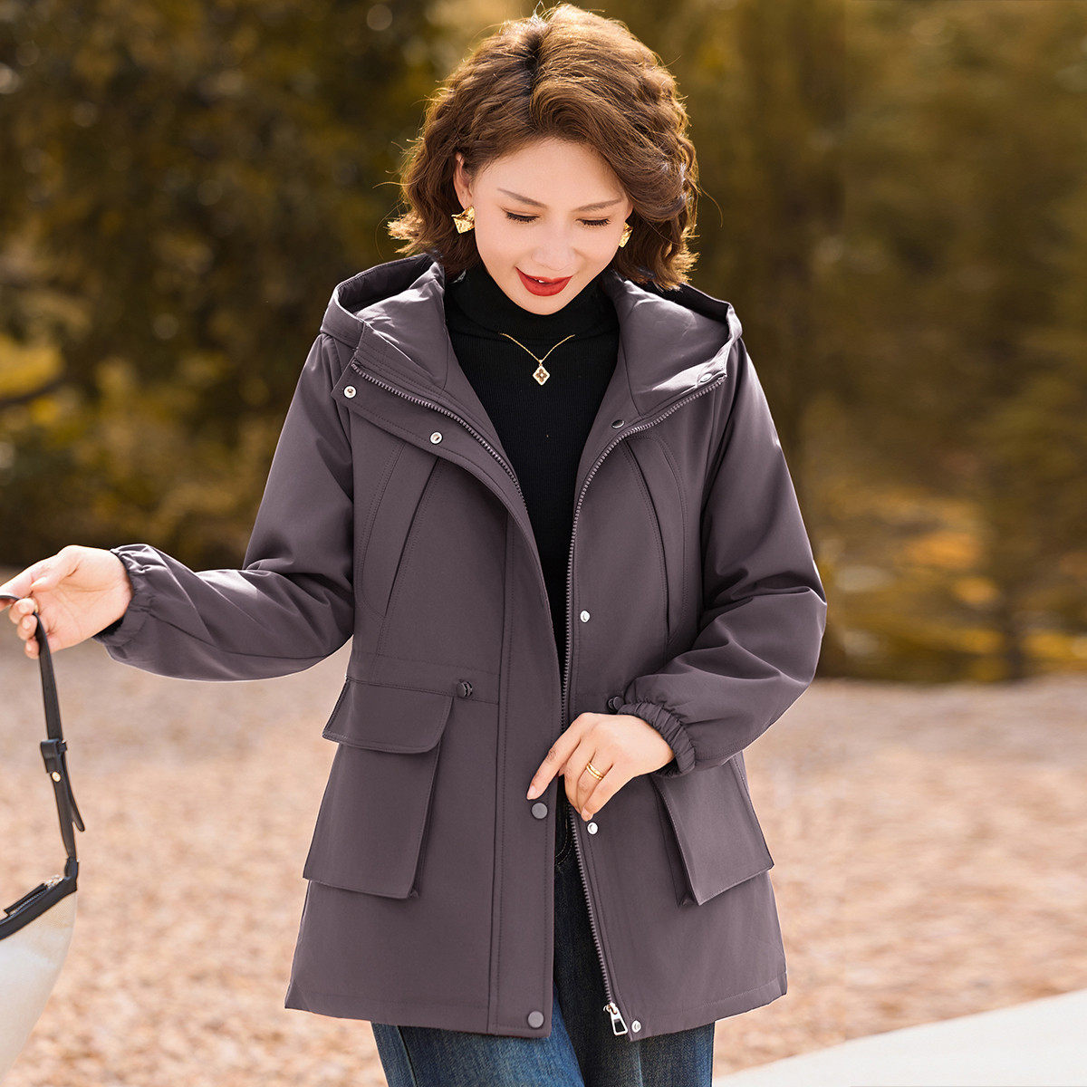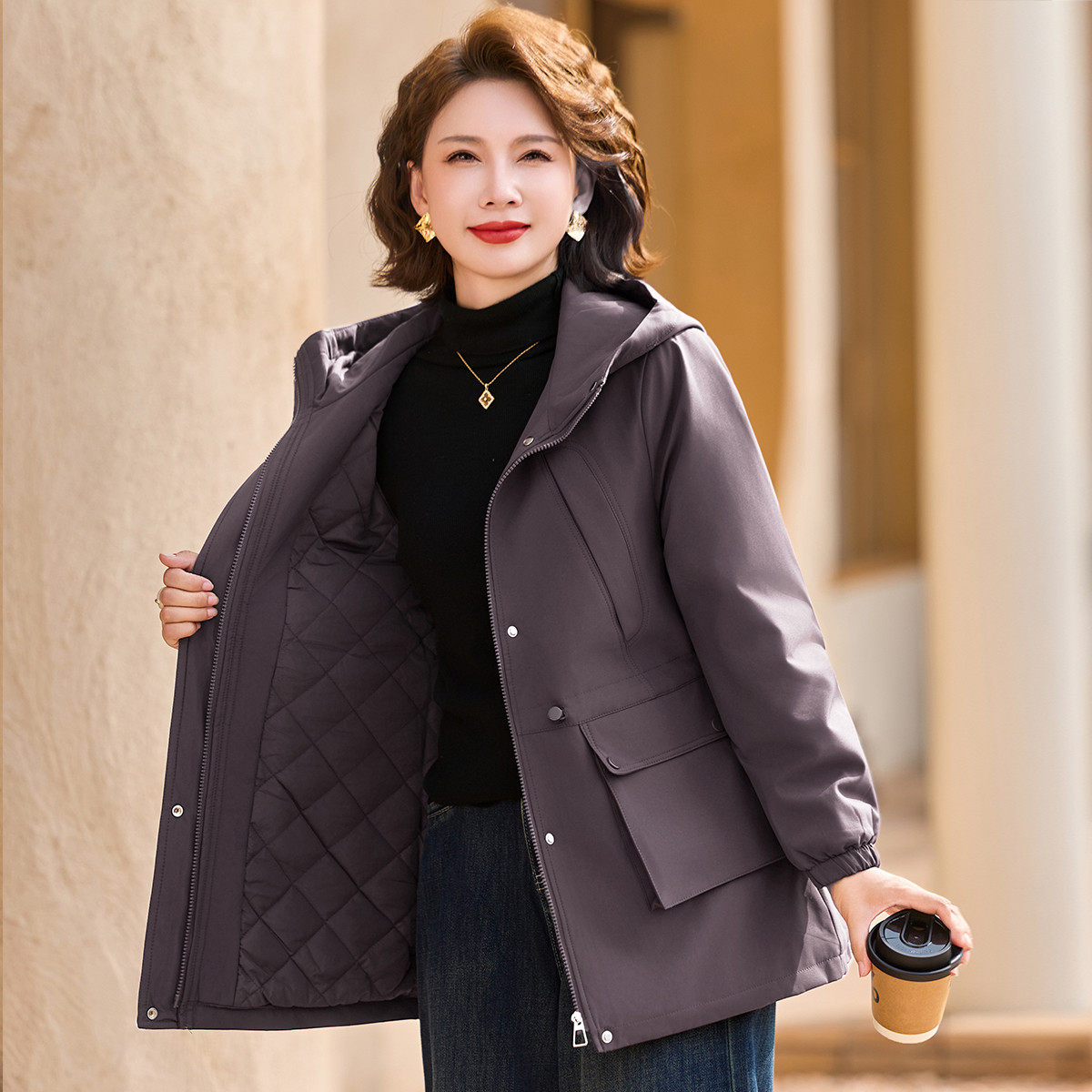 中老年女秋冬季 连帽宽松加厚外套中长款 百搭派克服棉衣妈妈装