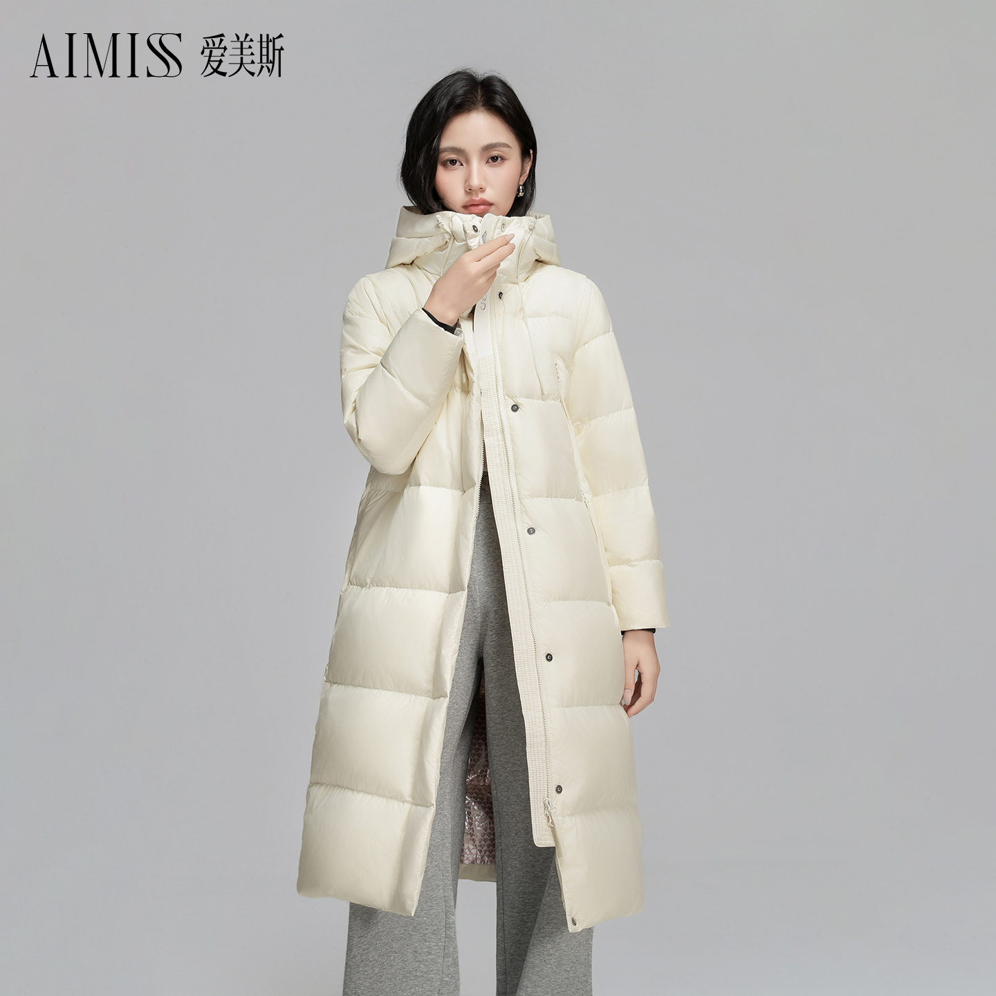 爱美斯羽绒服女士2025冬长款 MISS 连帽加厚保暖外套 蜂狂双11