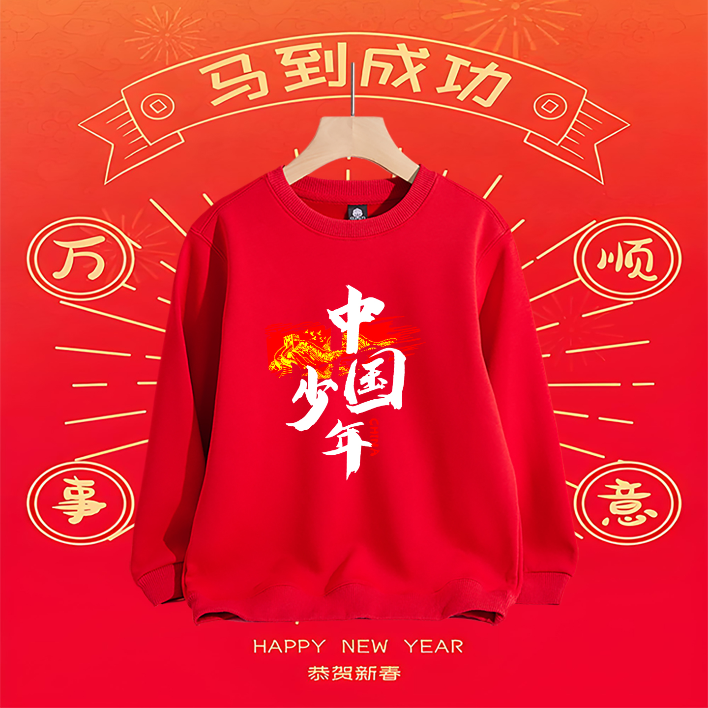 红色中国纯棉圆领儿童卫衣秋冬加绒厚男女宝同款 旦演出服可定制 元