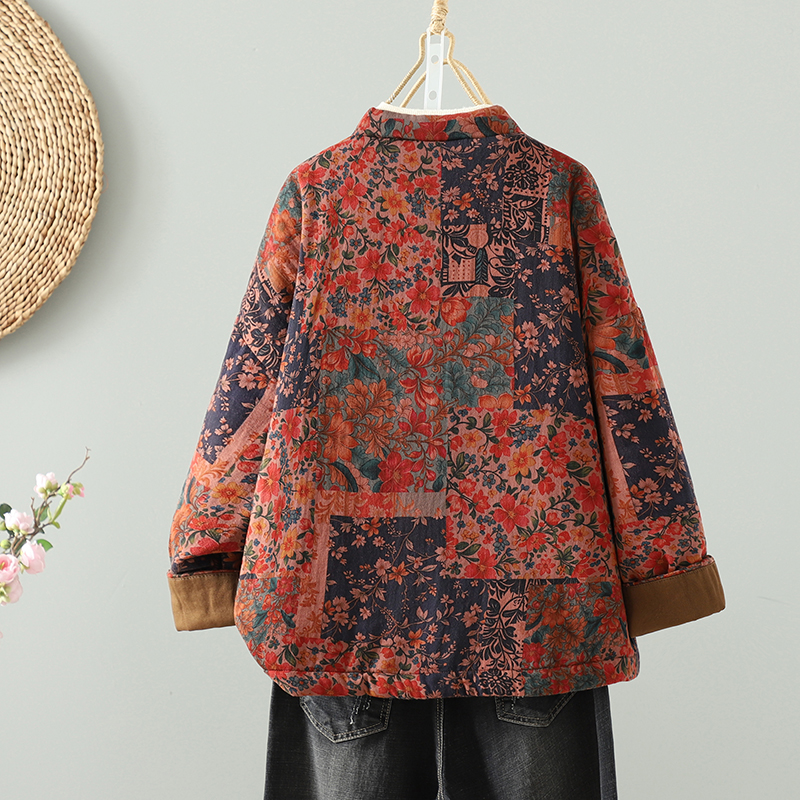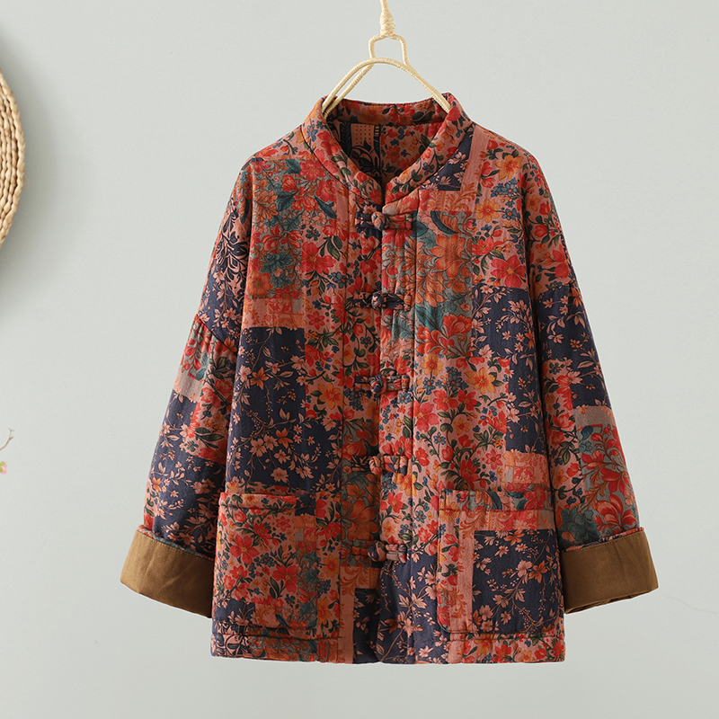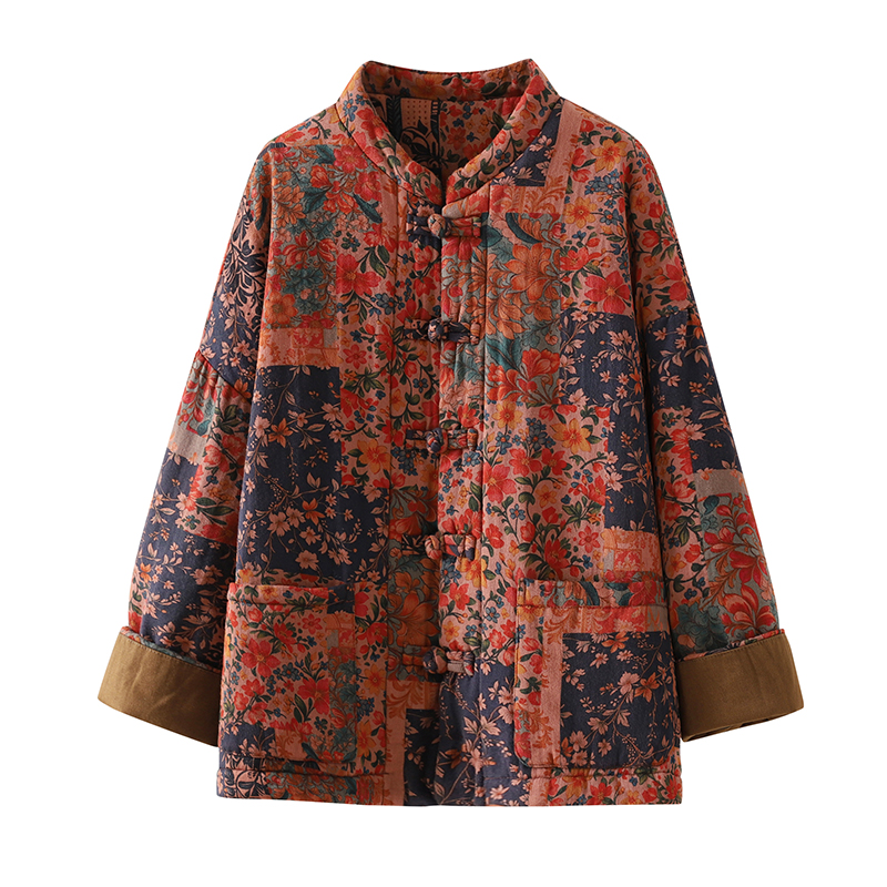 夹棉棉衣棉袄外套上衣 复古文艺棉麻印花棉服女新中式 实拍冬季 新款