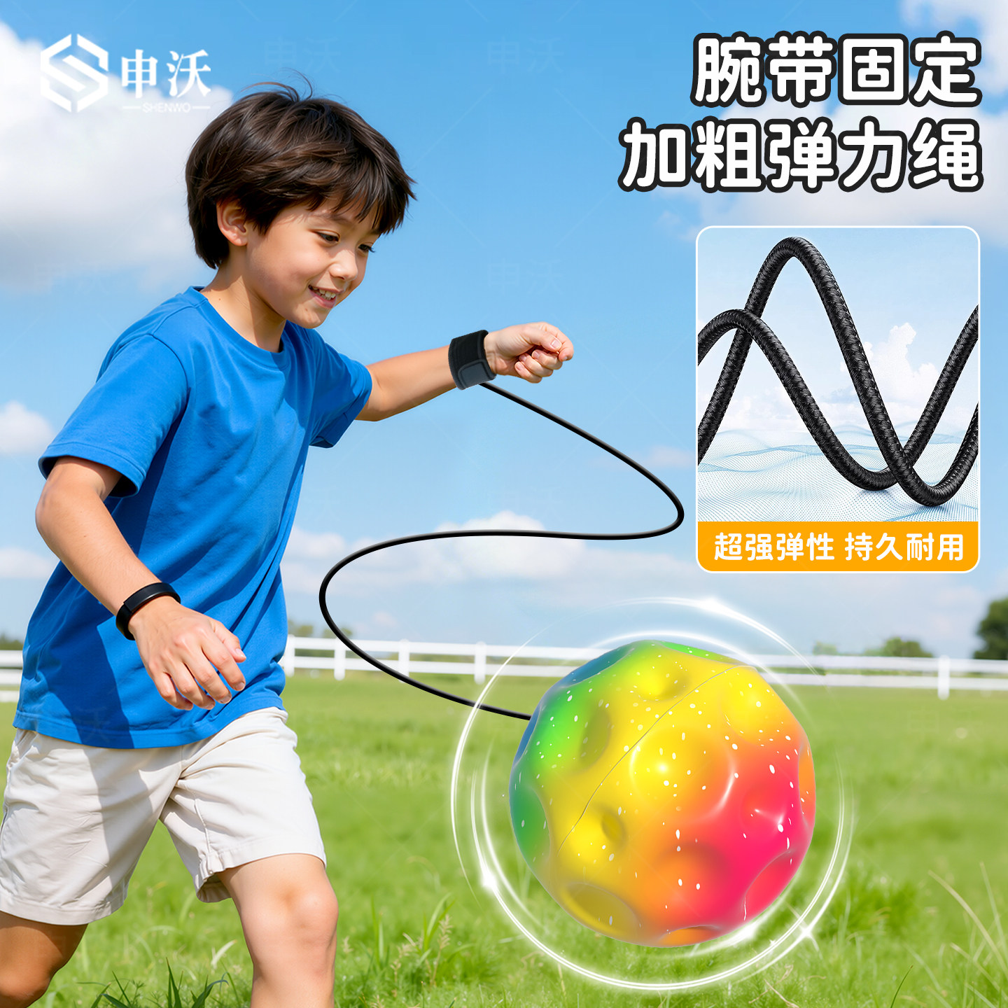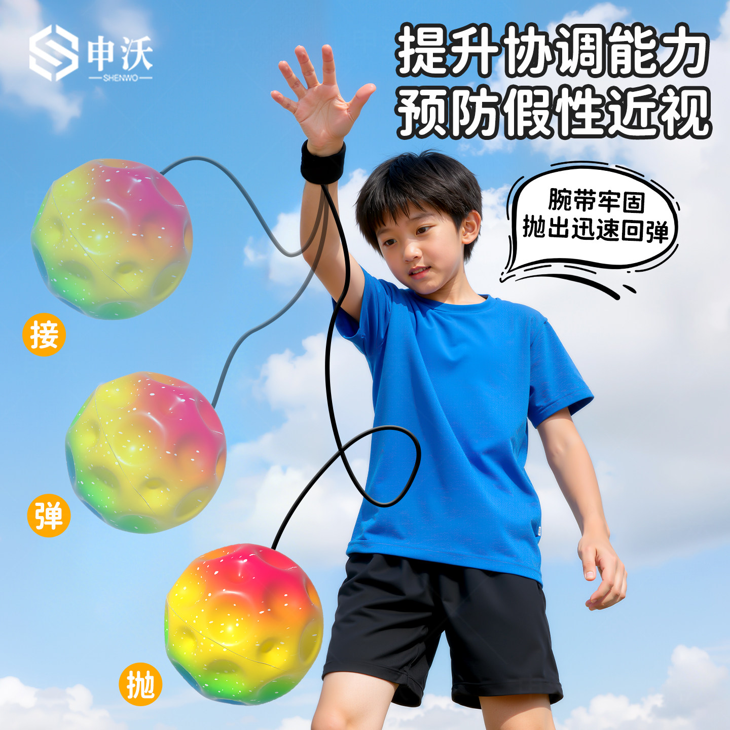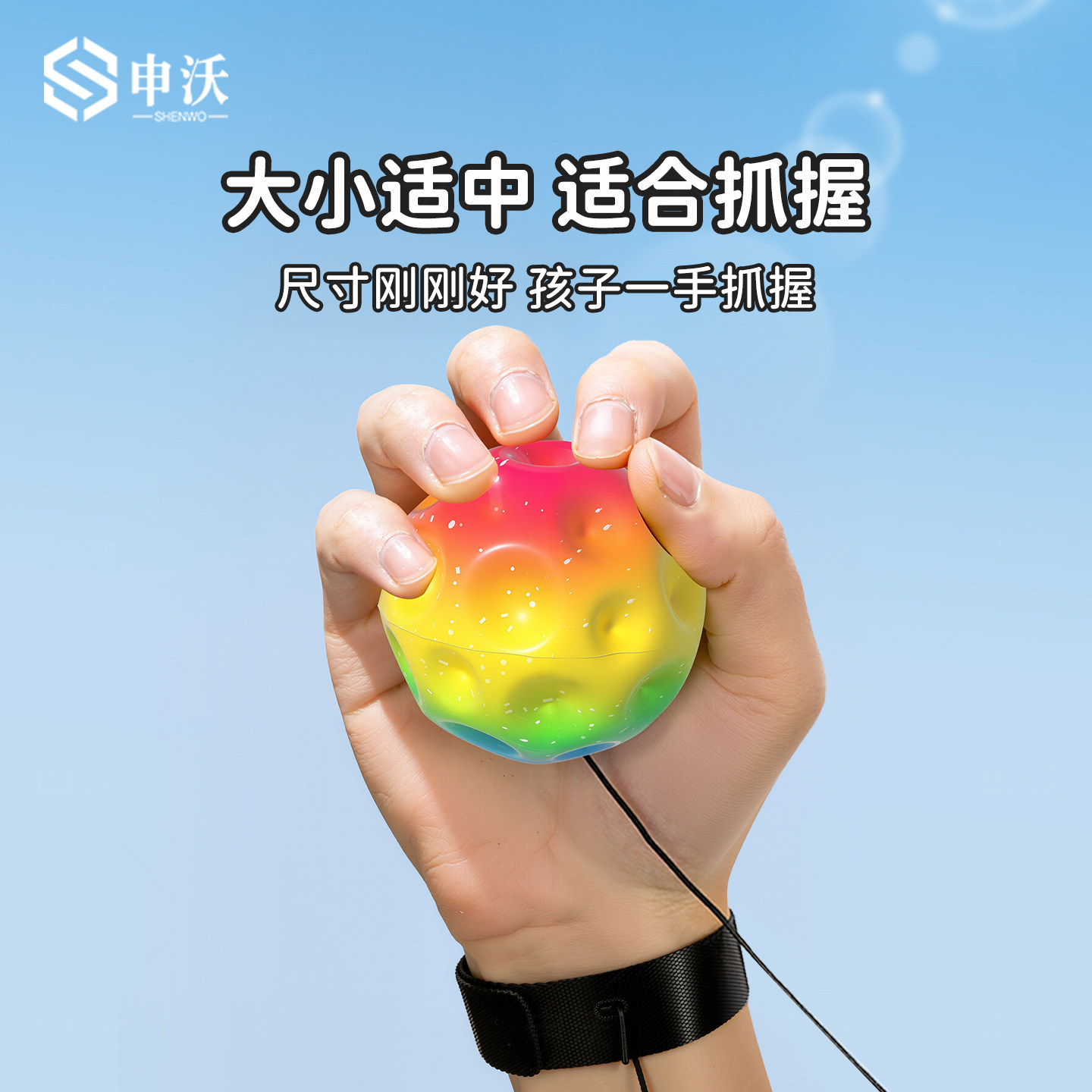 手腕弹力球带绳月球石儿童腕力球发光回弹甩甩球神器小孩解压玩具