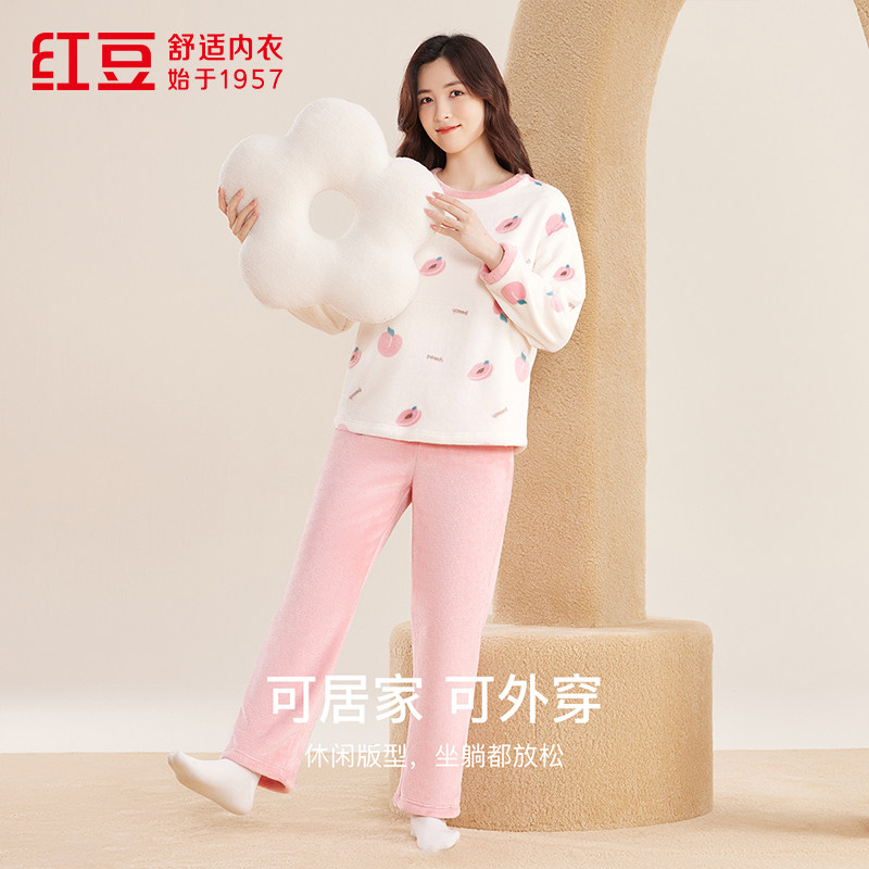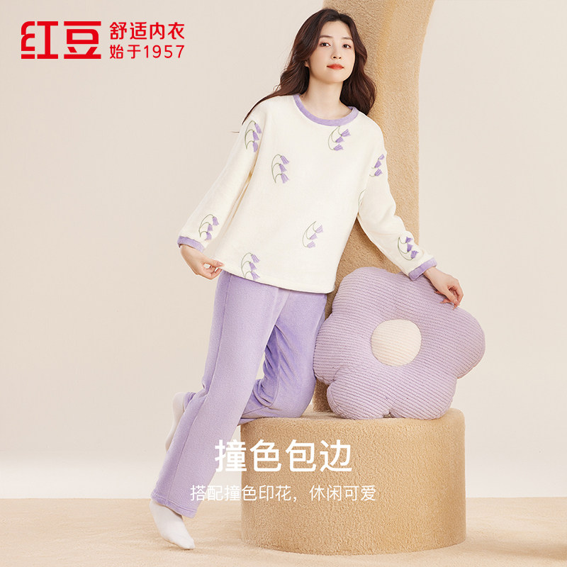 保暖法兰绒休闲家居服 女款 芬腾女士珊瑚绒睡衣秋冬季 加厚加绒套装