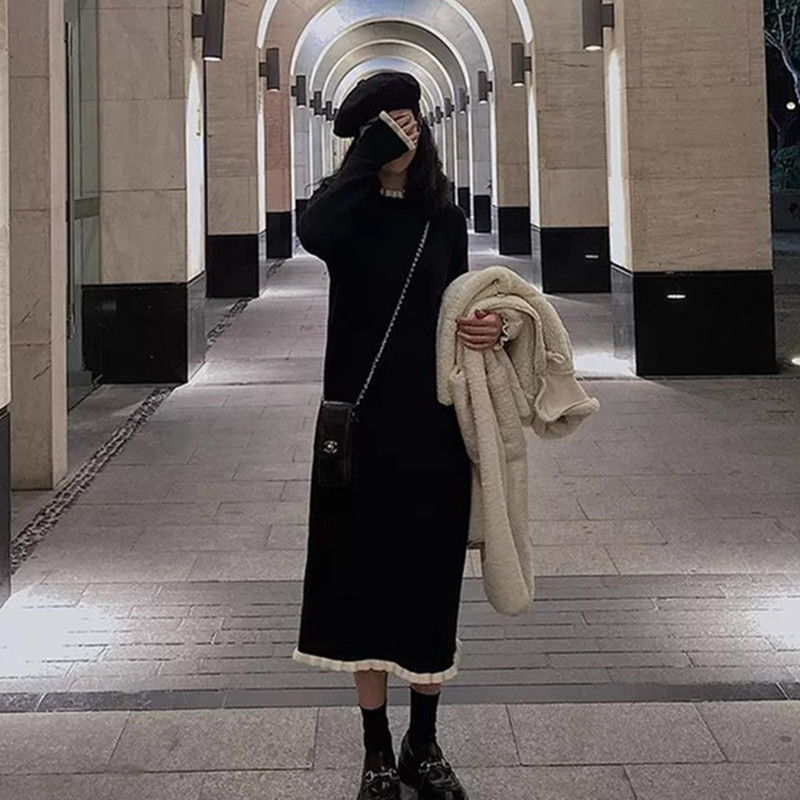 大衣内搭打底毛衣针织连衣裙子小个子黑色长裙 女装 2025秋冬季 新款