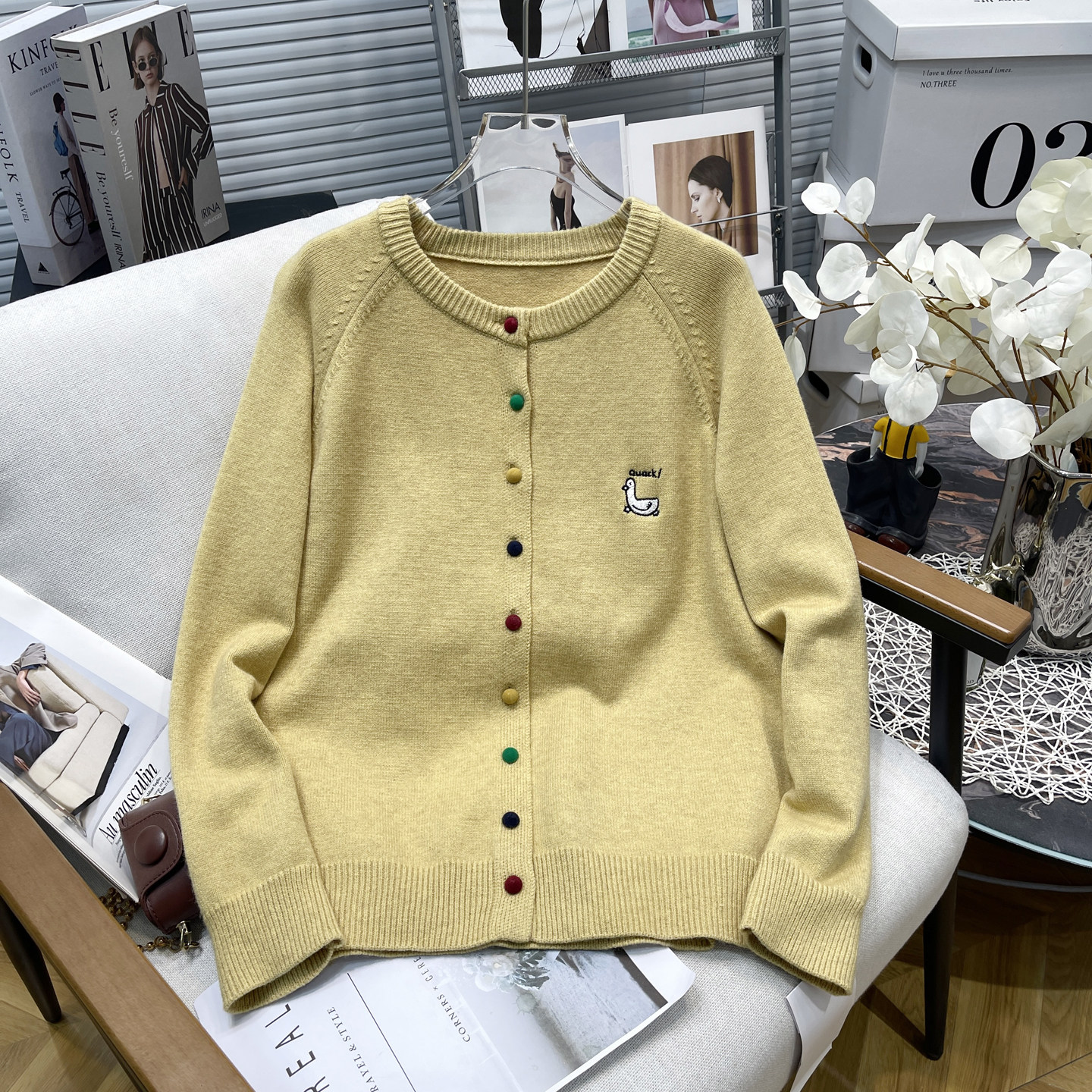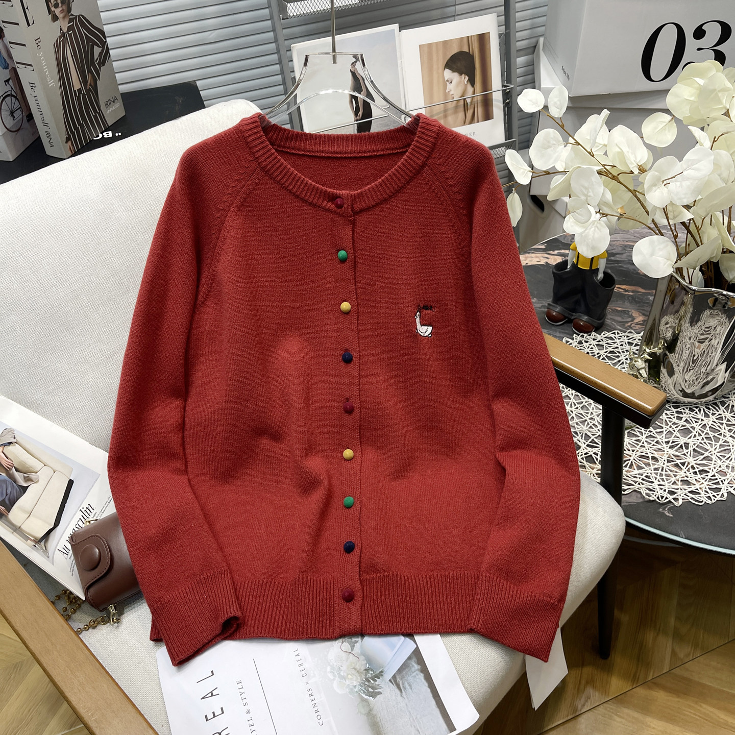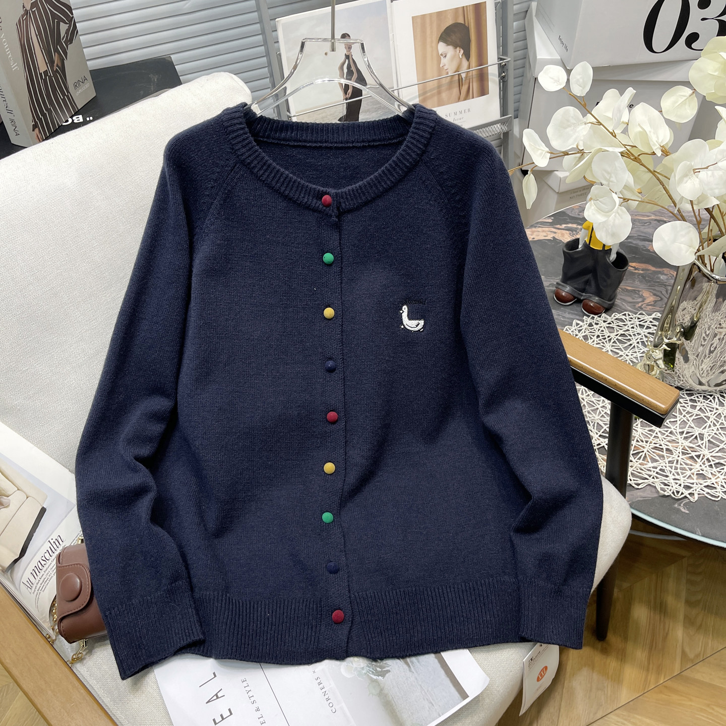纯色刺绣针织开衫 胡子叔大码 韩版 秋冬新款 女胖mm小清新毛衣 女装
