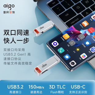 爱国者u盘TypeC双接口手机电脑两用大容量高速优盘官方旗舰店正品
