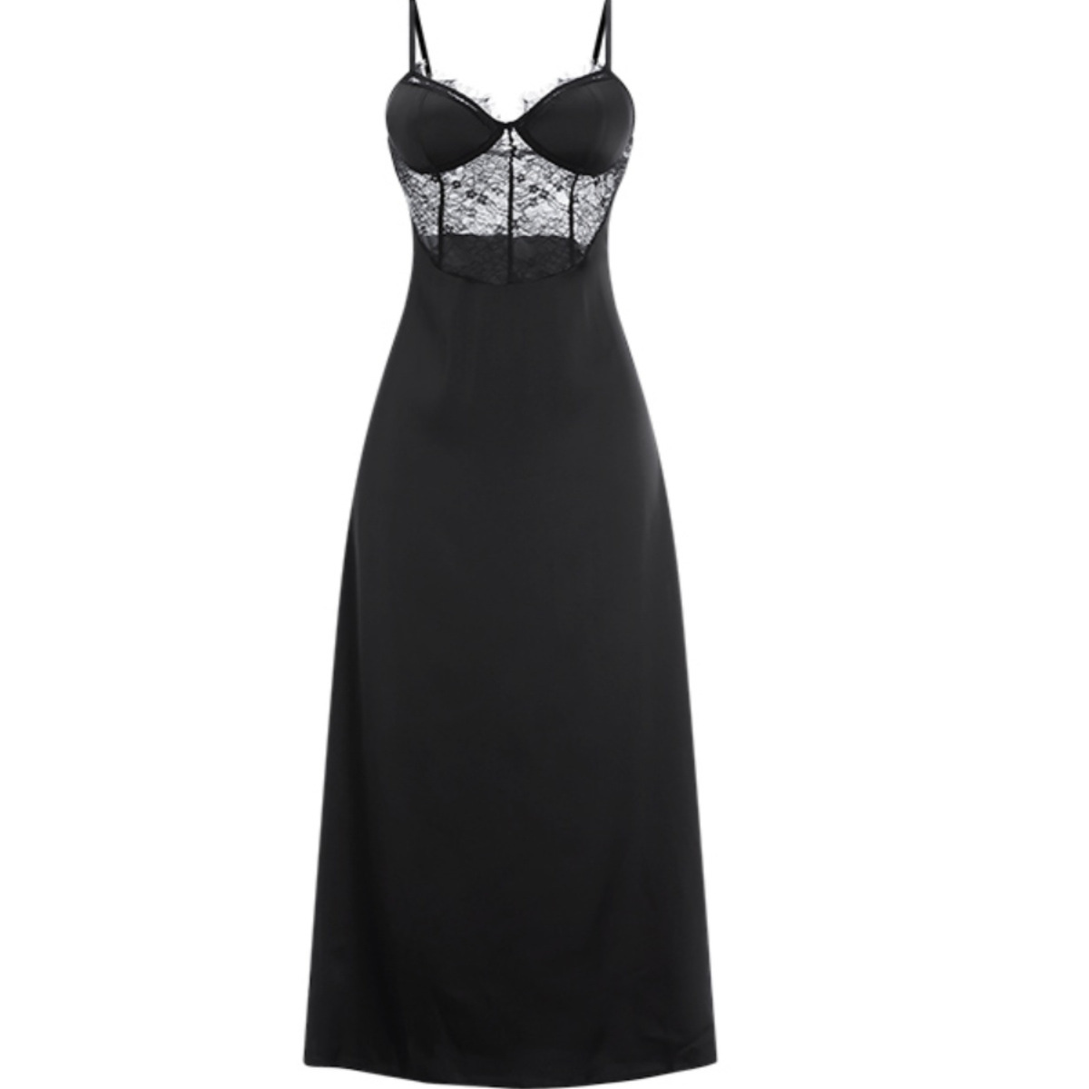 小胸性感真丝吊带睡衣女带胸垫蕾丝修身 显瘦睡裙长裙高级感家居服