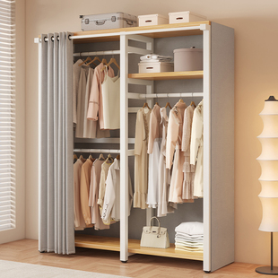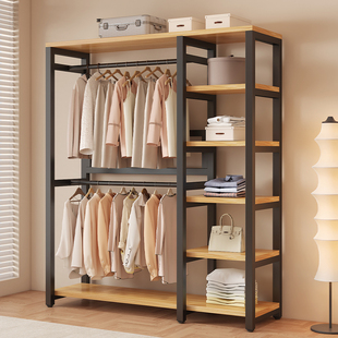 衣帽架家用卧室简易挂衣架出租房铁艺置物架开放式 落地可组合衣柜