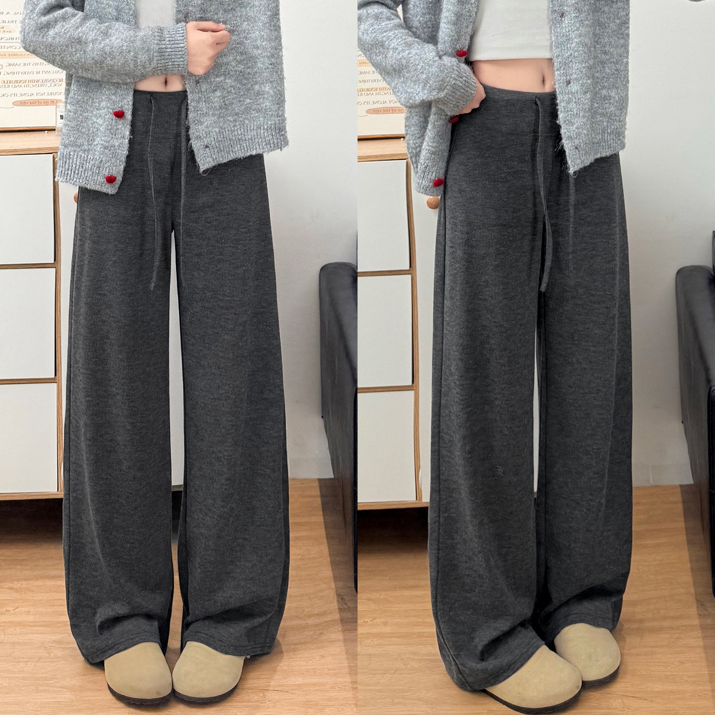 韩系慵懒风小个子垂感直筒休闲运动裤 深灰色糯米裤 女2025春秋新款