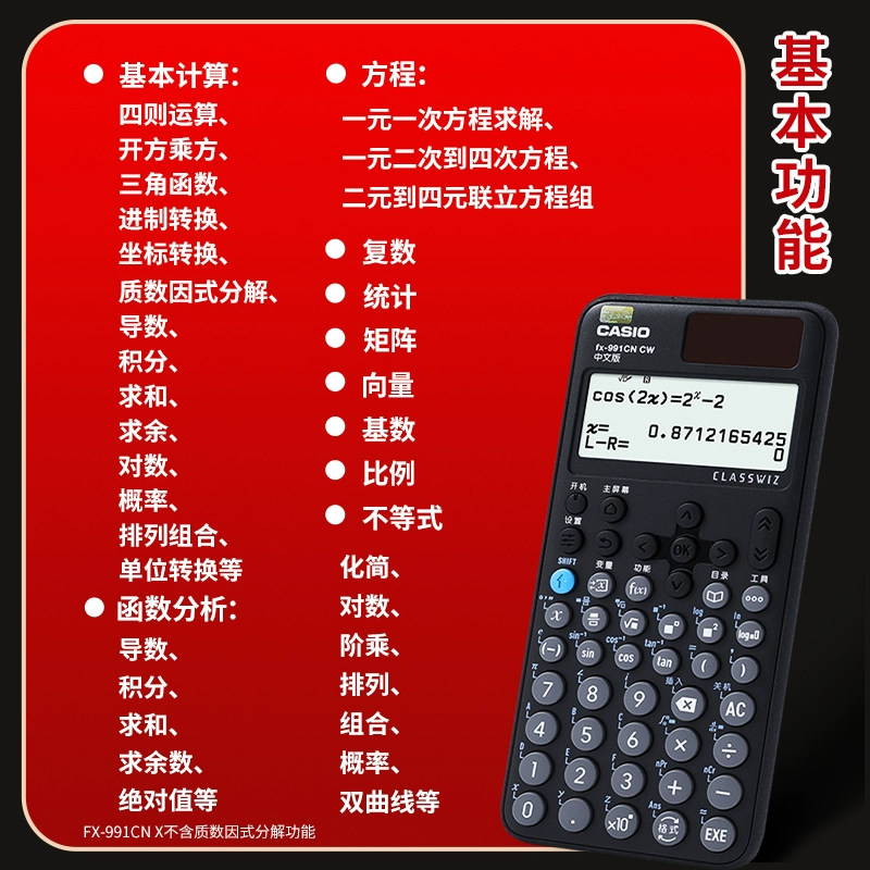 卡西欧计算器FX991二代新品 CASIO 999CN函数计算器学生考试物理化学竞赛考研注会CPA税务师上海高考 自营