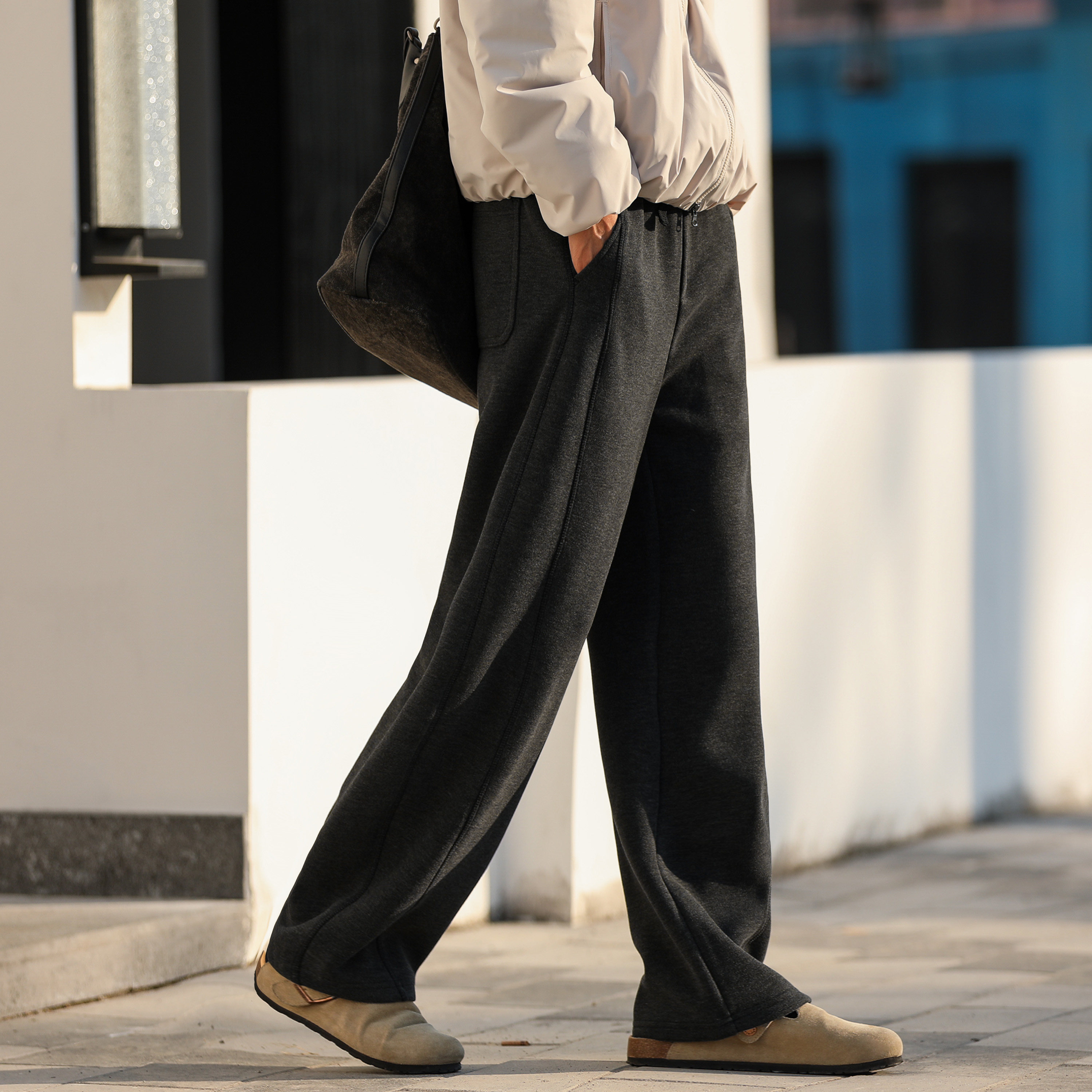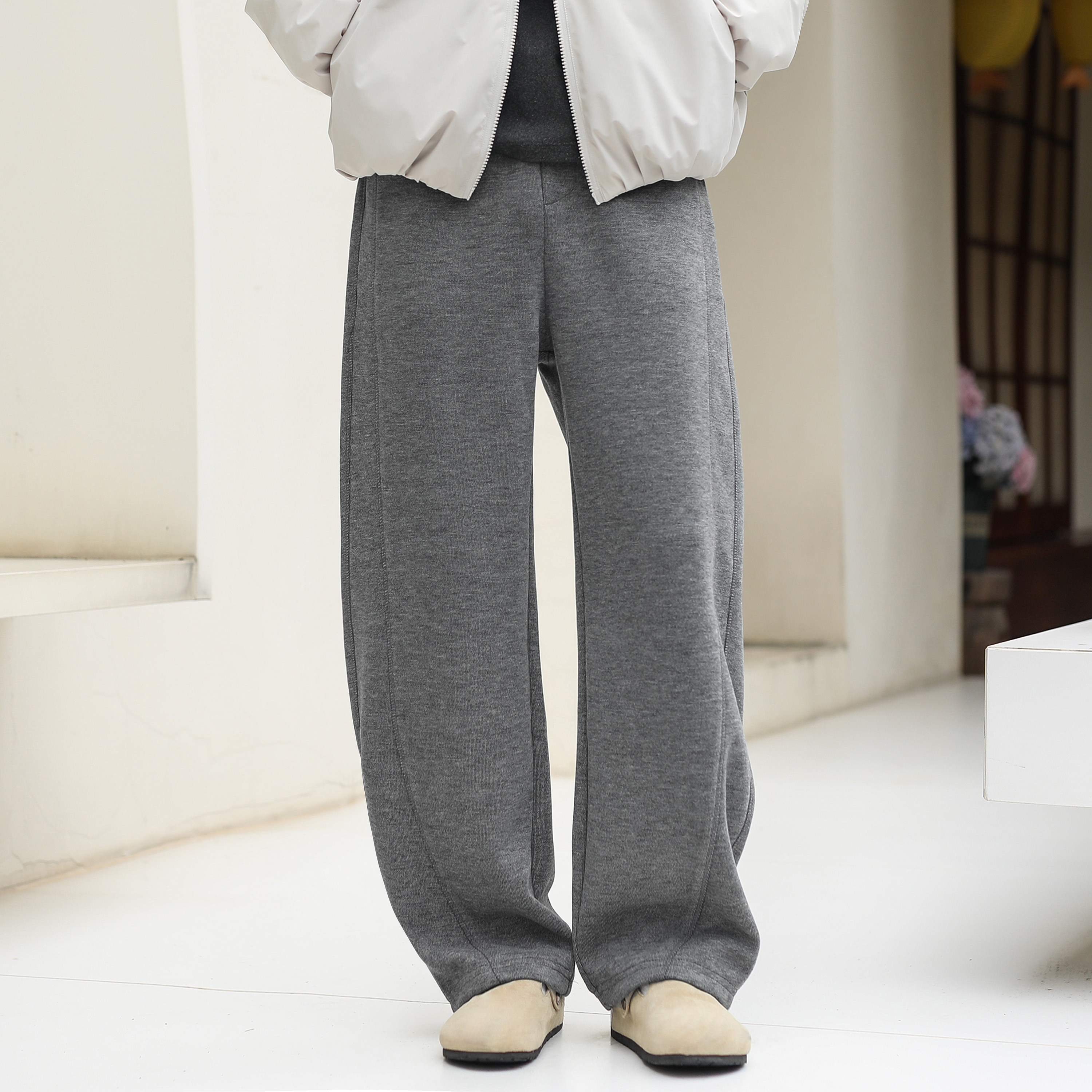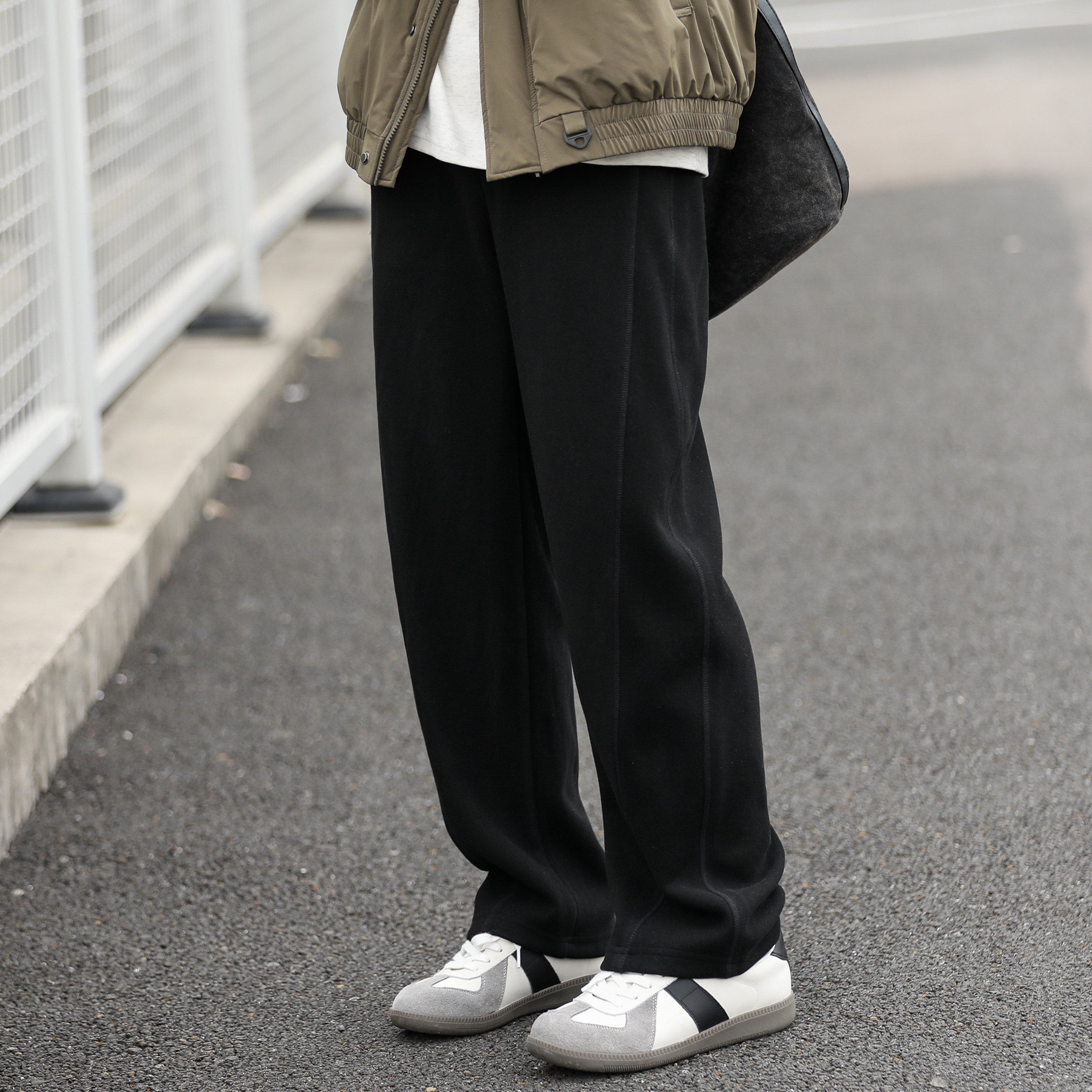 休闲弯刀长裤 500g羊毛混纺重磅嘿马七作美式 复古秋冬男潮宽松卫裤
