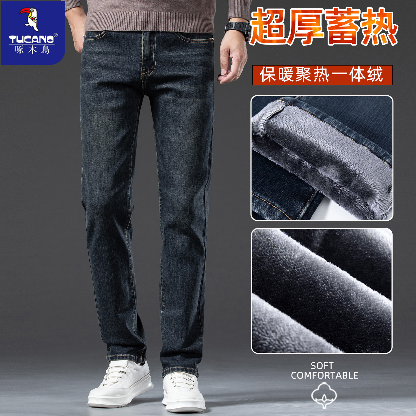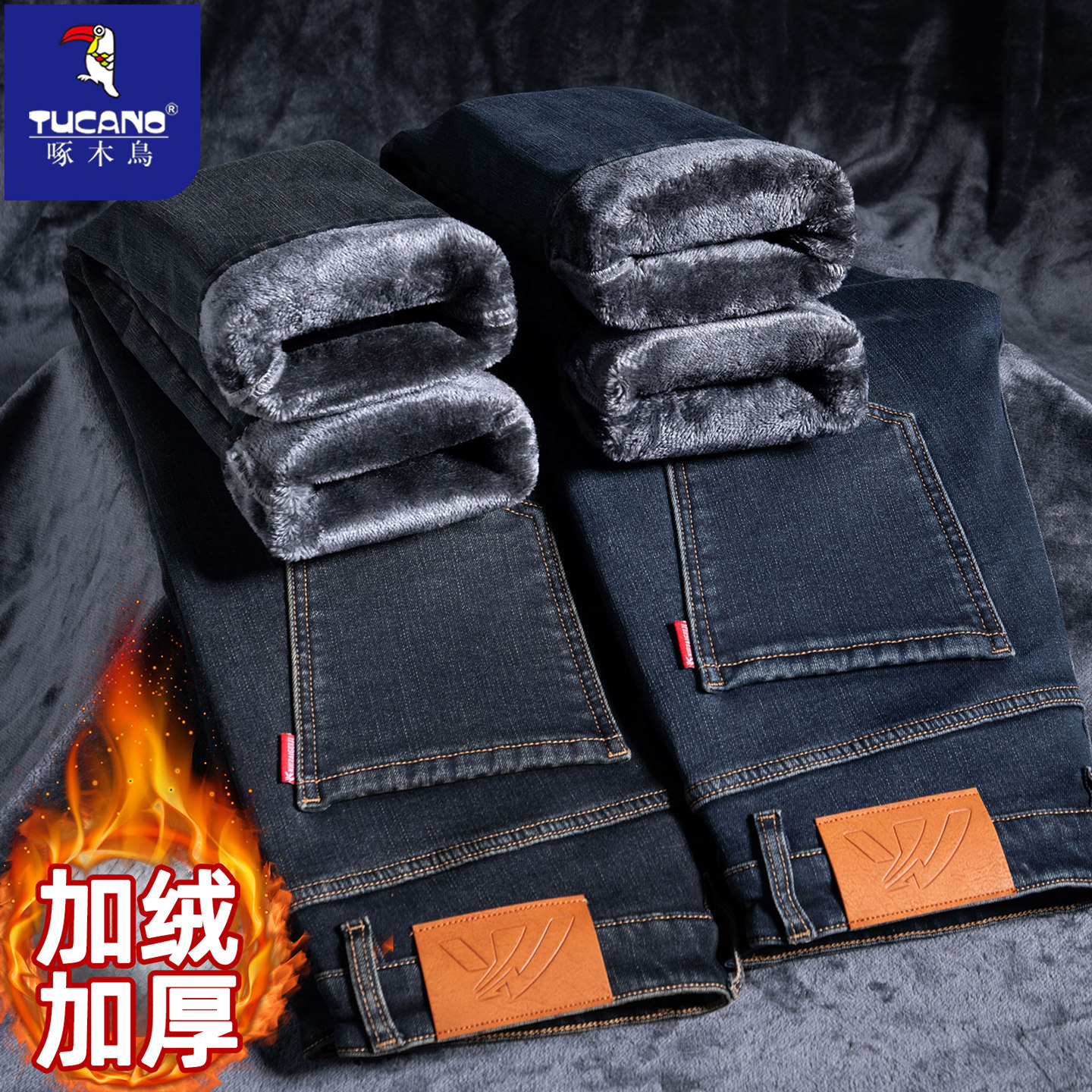弹力超厚保暖长裤 啄木鸟加厚加绒新款 合体直筒修身 男冬季 子 牛仔裤