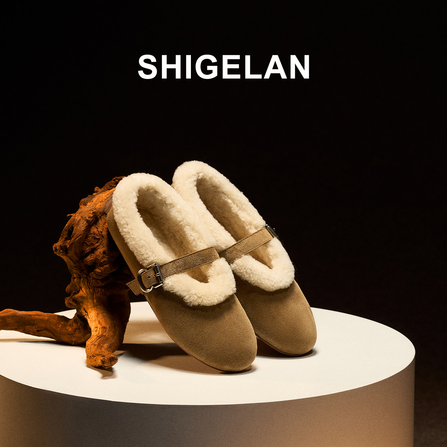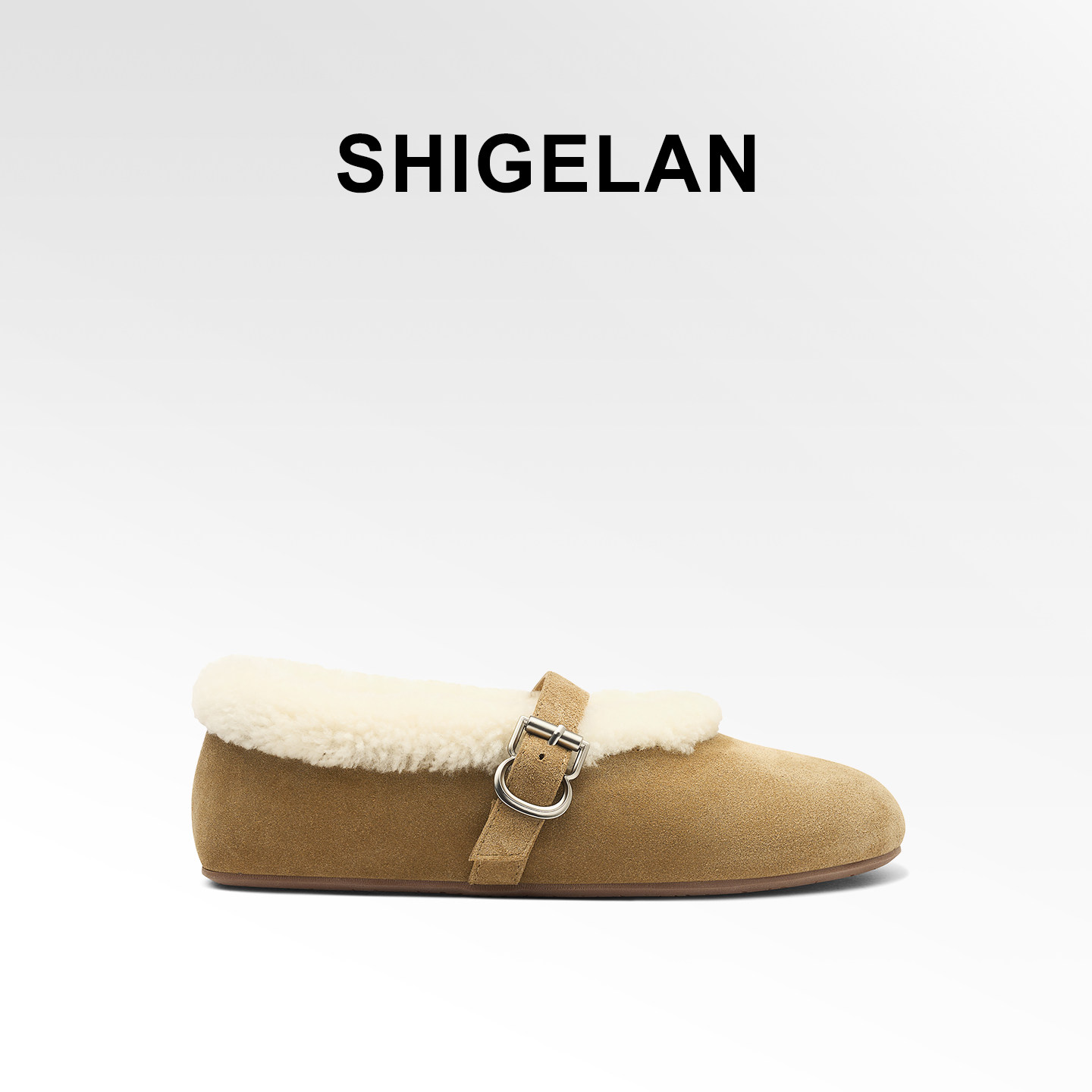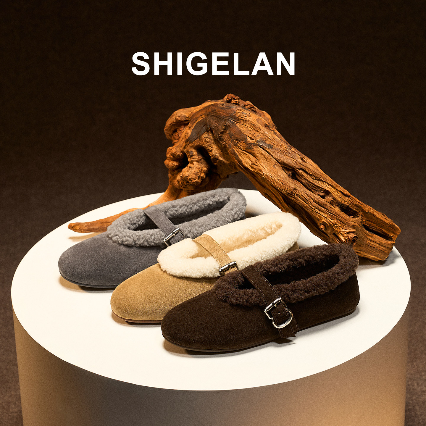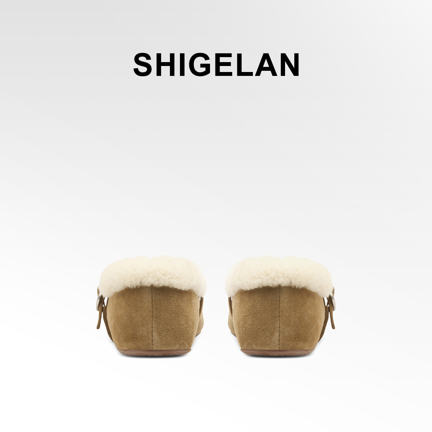 605 圆典 加绒厚底4cm魔术贴浅口2025毛绒玛丽珍呢子一脚蹬棉鞋