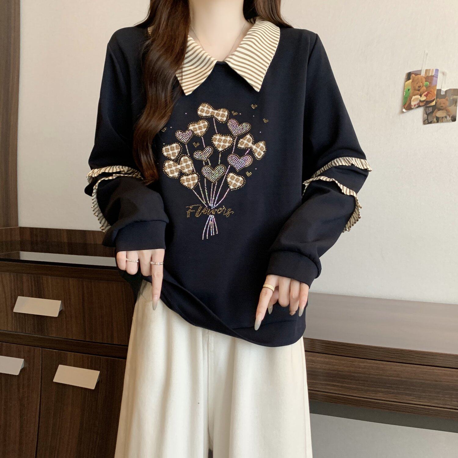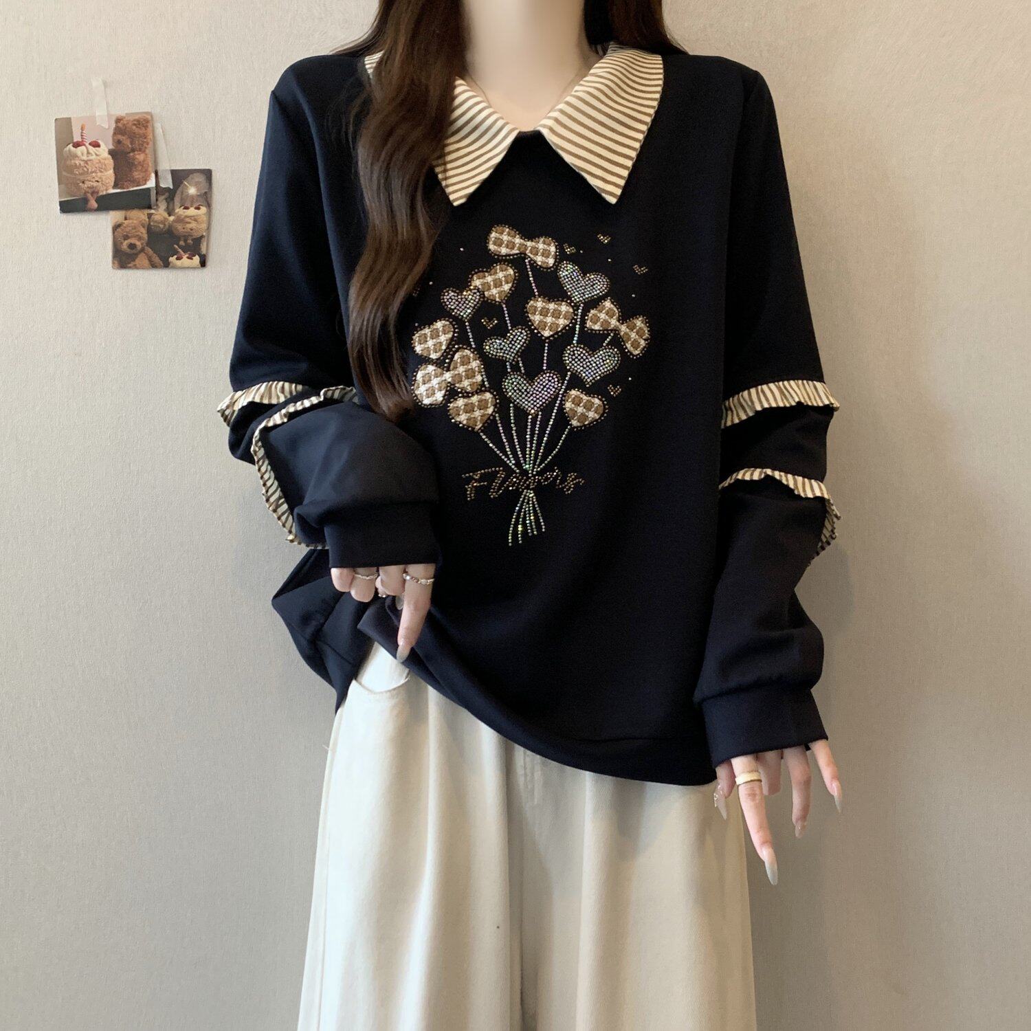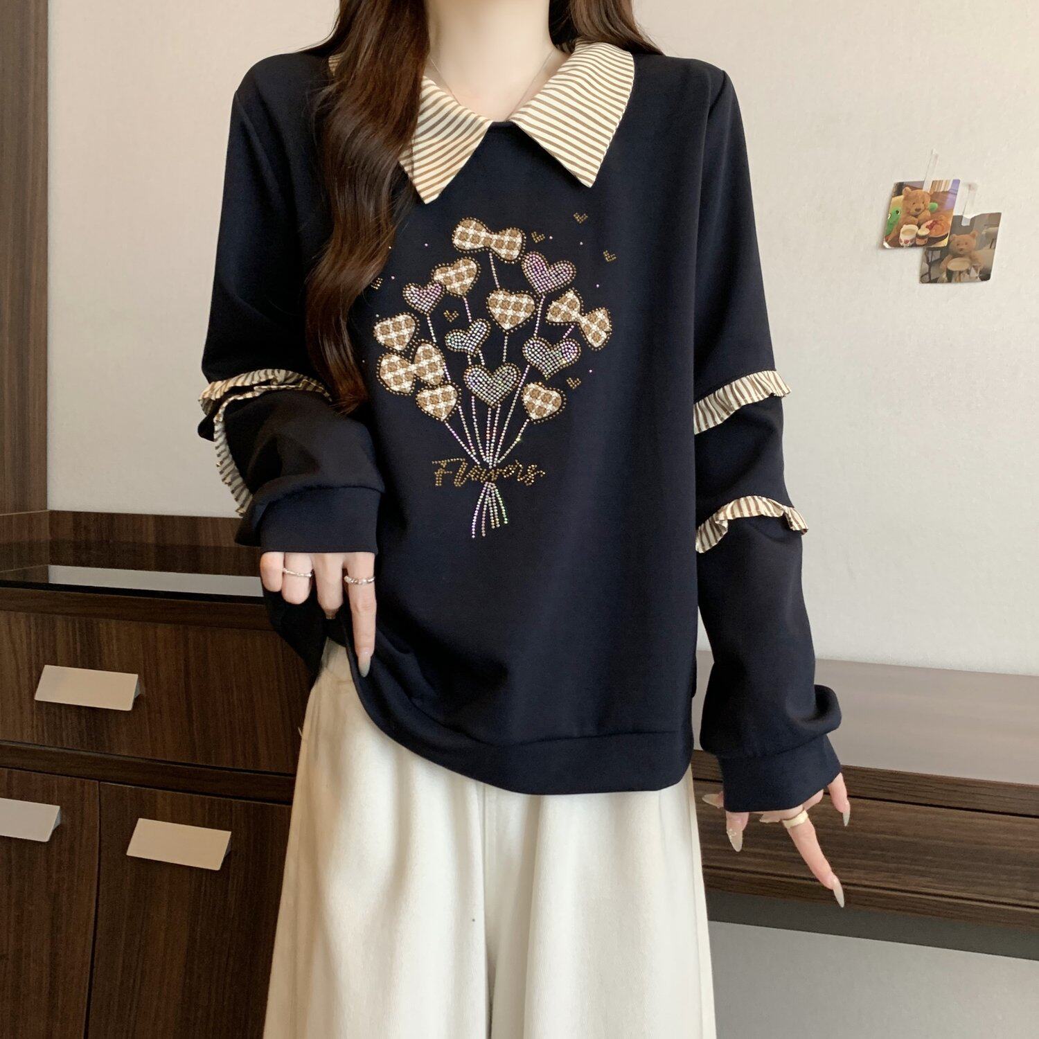 卫衣秋冬2025新款 系印花高级感polo领长袖 上衣 女洋气时髦个性 大码