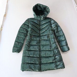 棉服外套立领连帽拉链修身 长袖 亮面百搭厚棉衣D13 女中长款 冬季