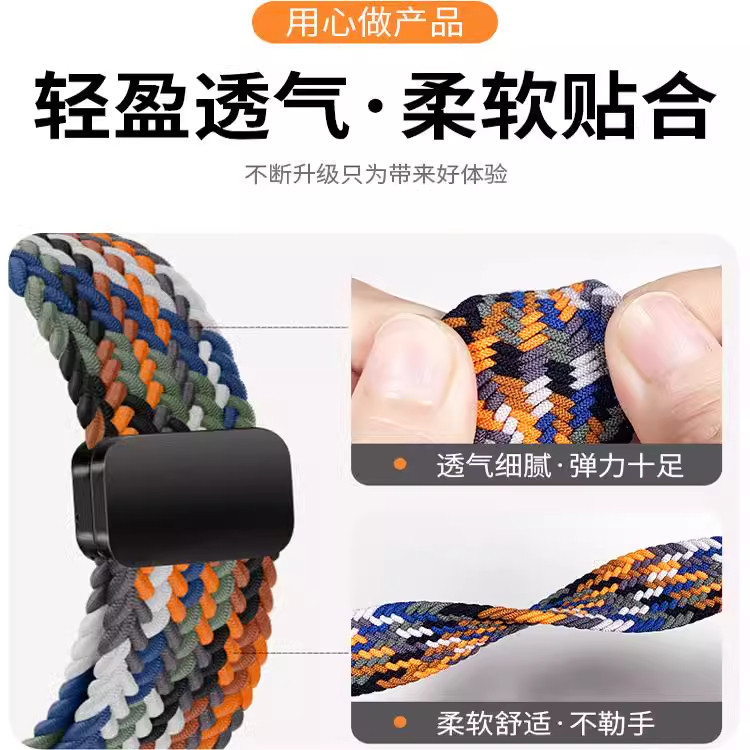 配件 时尚 适用于荣耀手表2i表带荣耀亲选Rossini智能手表2i磁吸扣编织腕带2i新款 女士舒适透气运动替换带男款