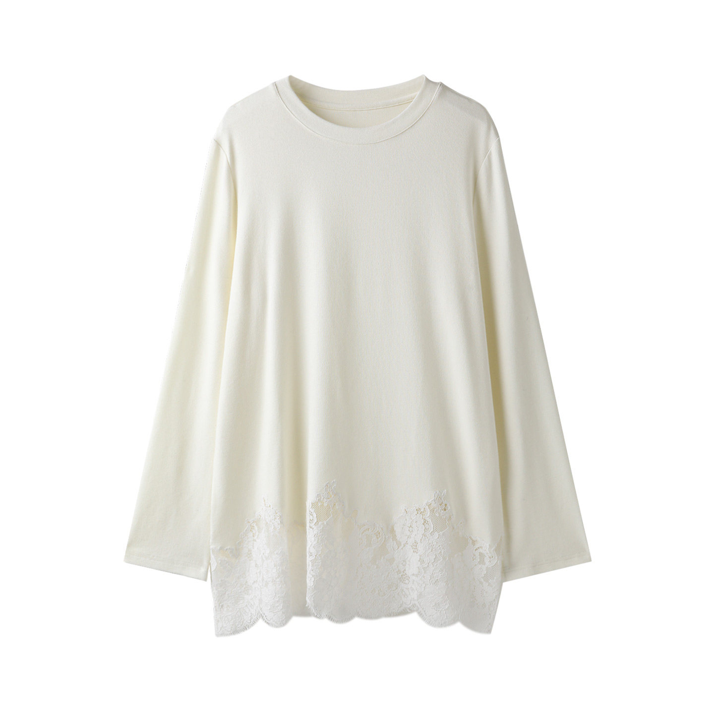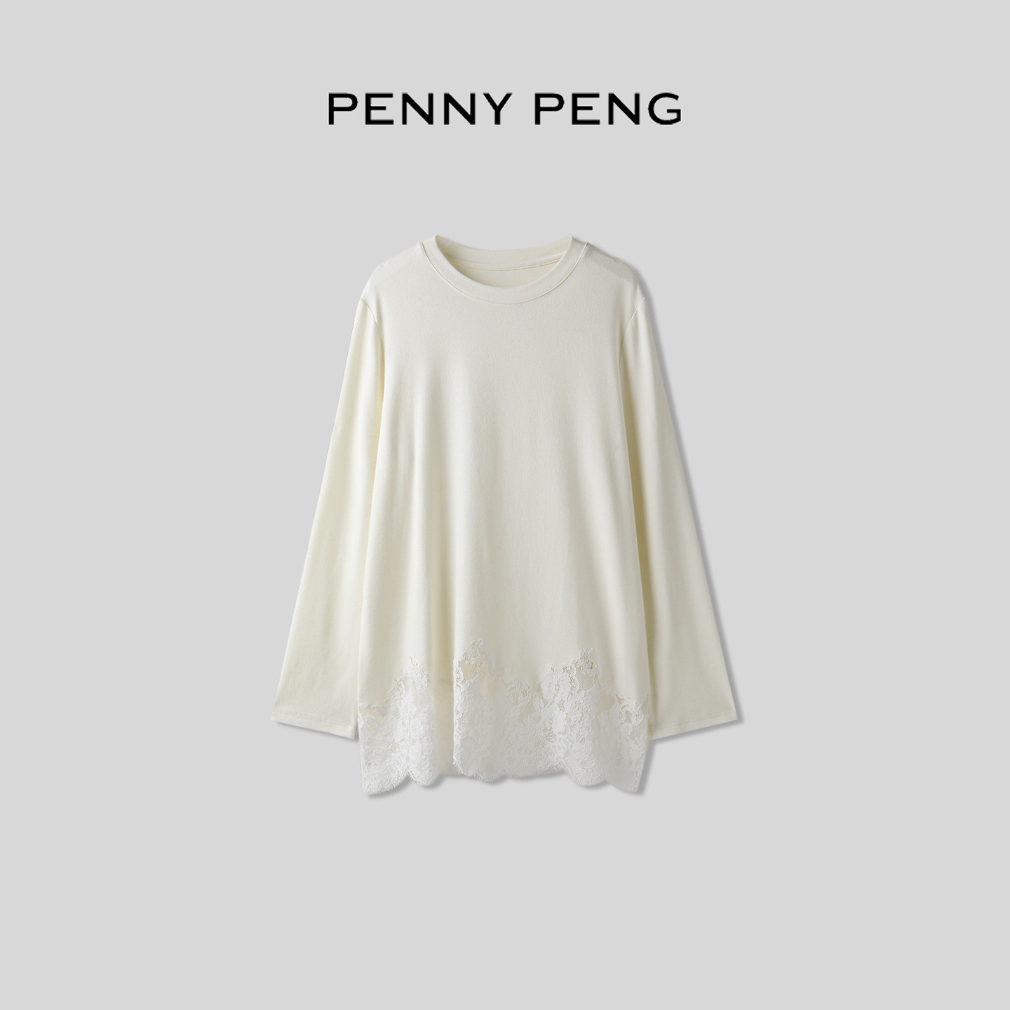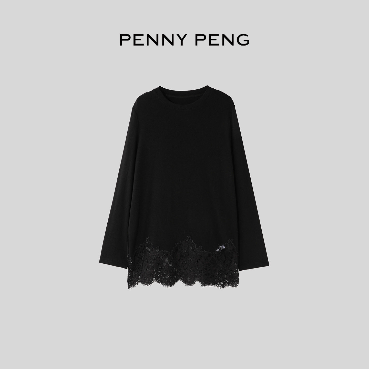 T恤 圆领拼接精致绣花蕾丝下摆磨毛针织料长袖 PENNYPENG 蕾丝秘境