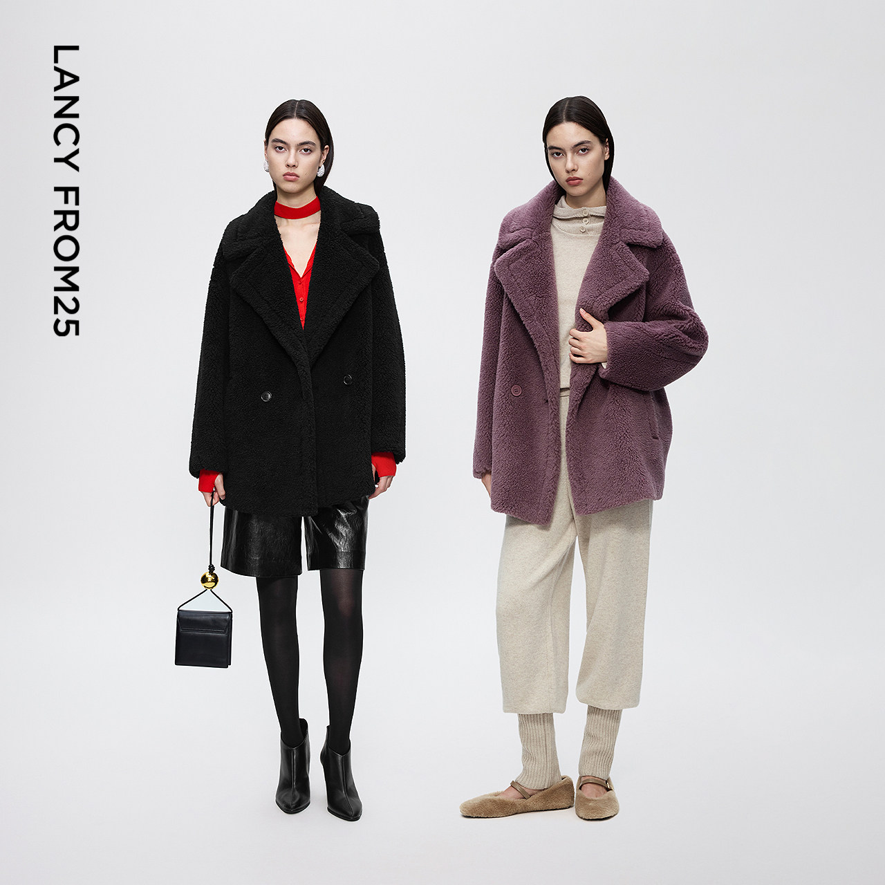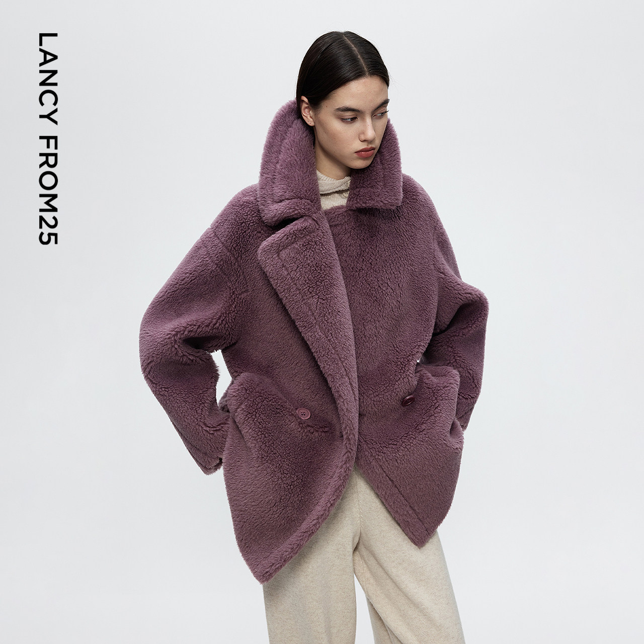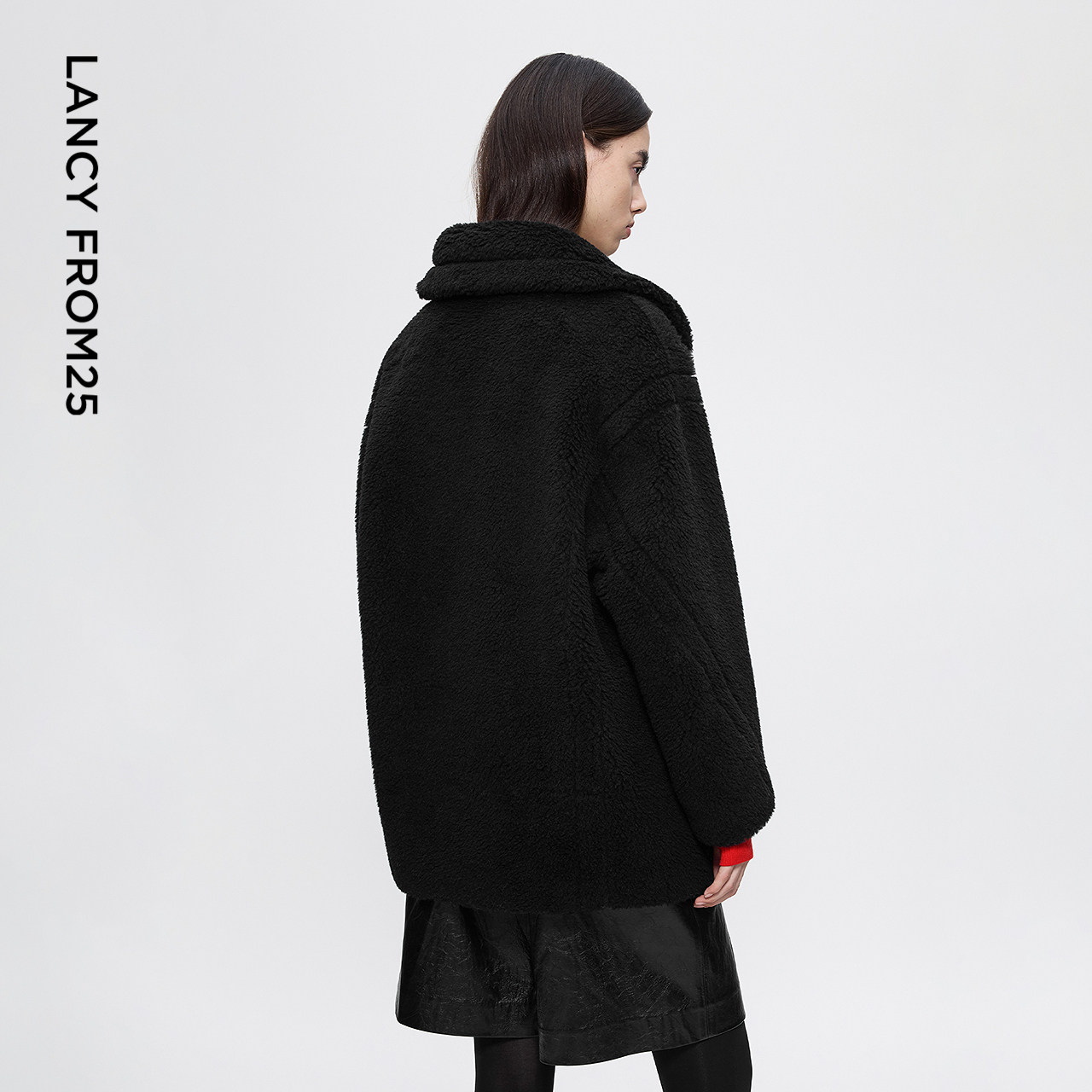 朗姿纯色直筒两粒扣仿皮草外套气质简约优雅通勤风2025冬季 女 新款