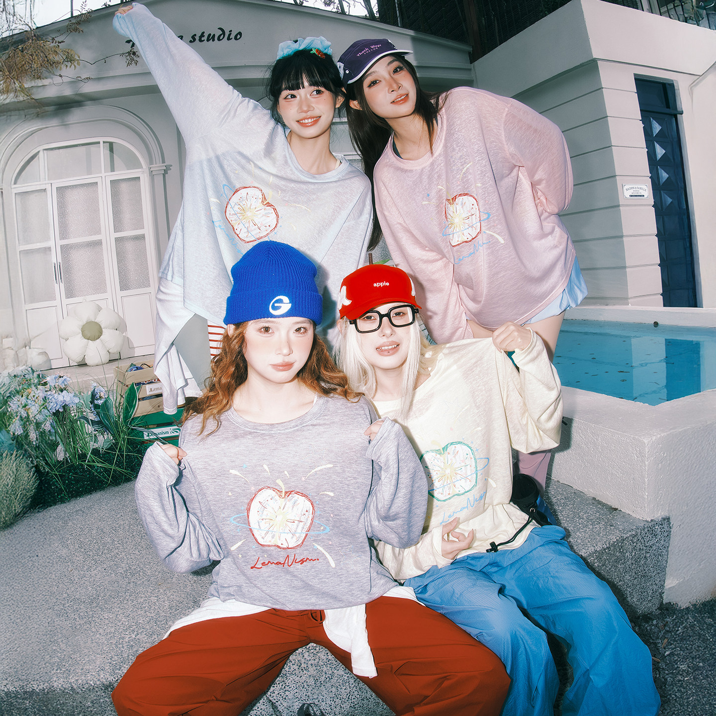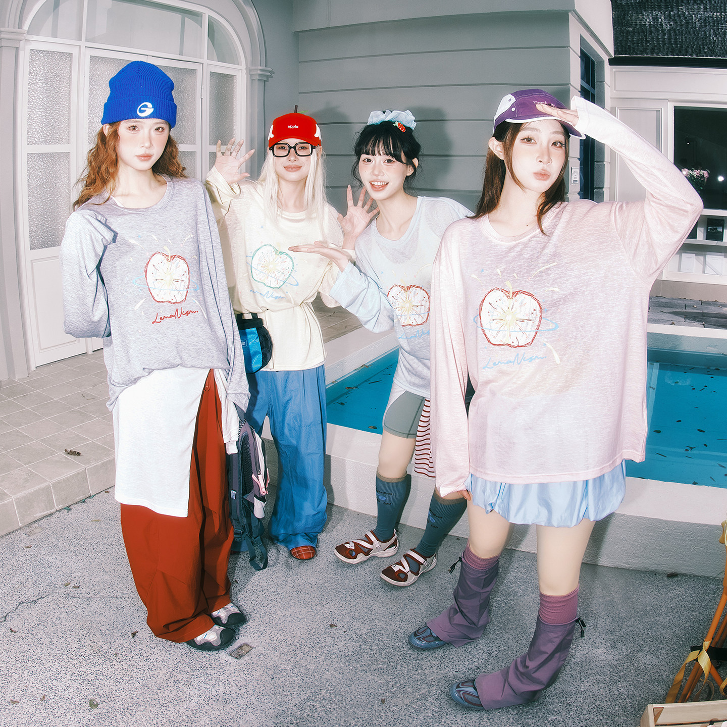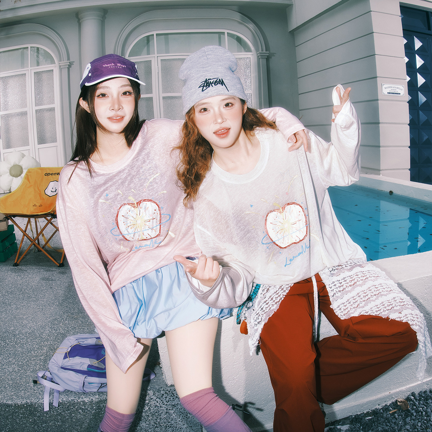 女生宽松防晒罩衫 T恤2026春夏新款 潮牌苹果涂鸦长袖 lemanism美式