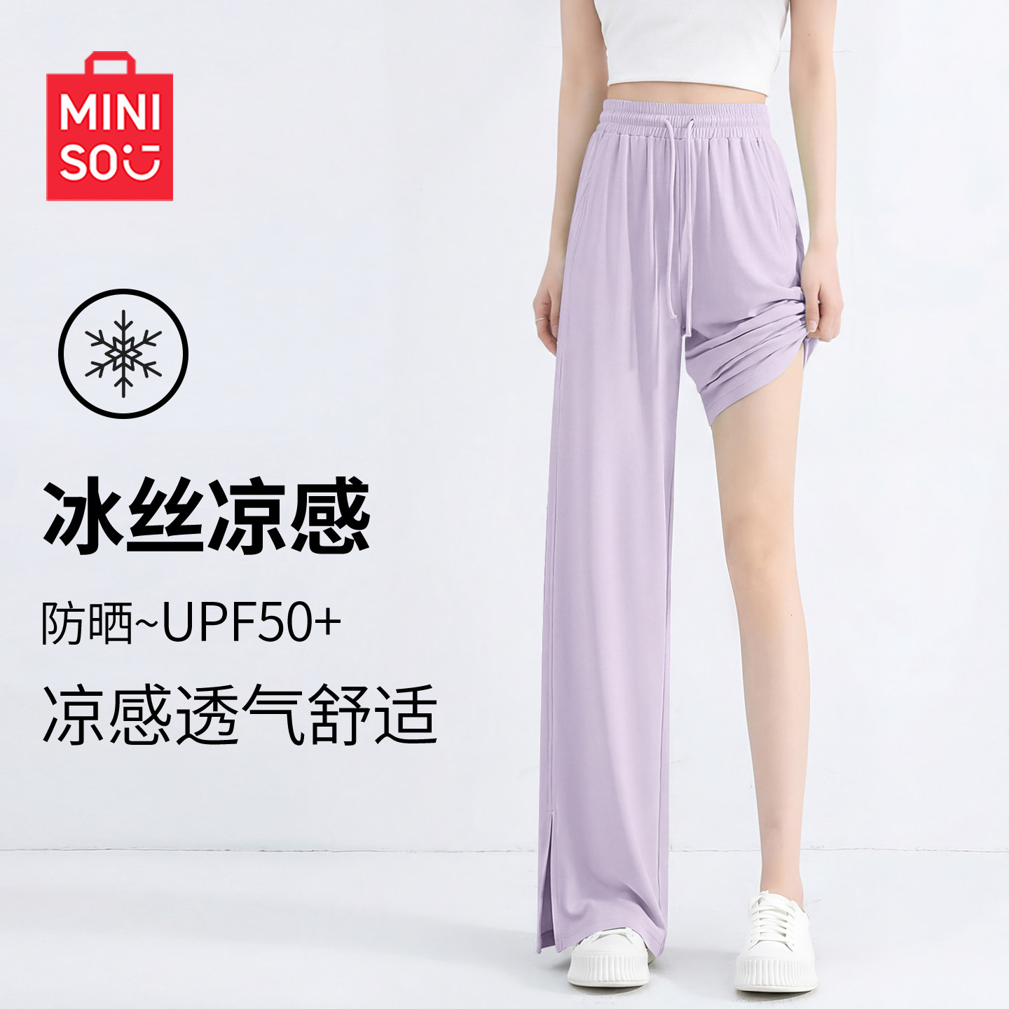 夏季 女2026新款 运动裤 速干裤 子J MINISO 直筒冰丝裤 名创优品防晒裤