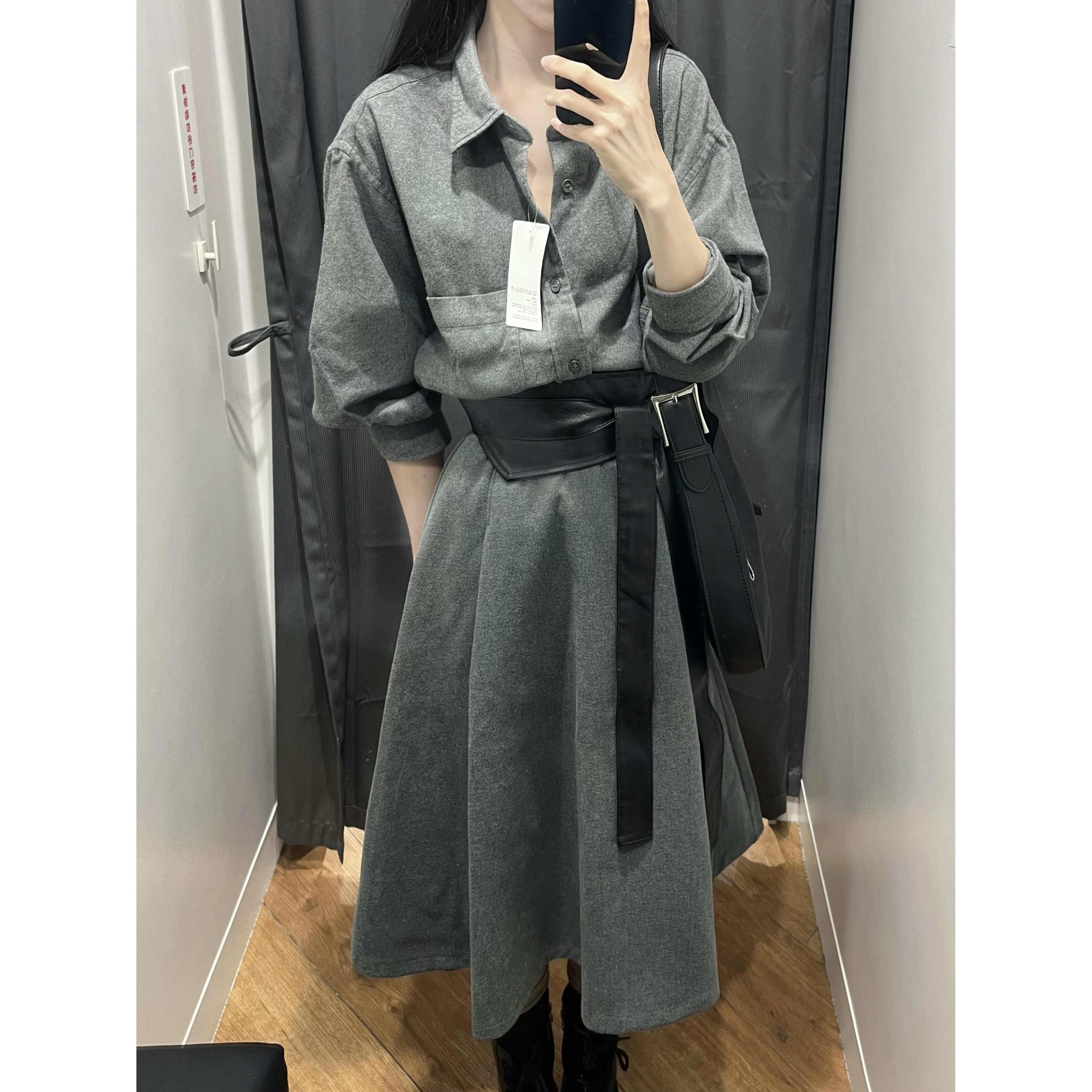 春夏装 裙女2026新款 穿搭一整套收腰显瘦大摆半身裙子 套装 灰色衬衫