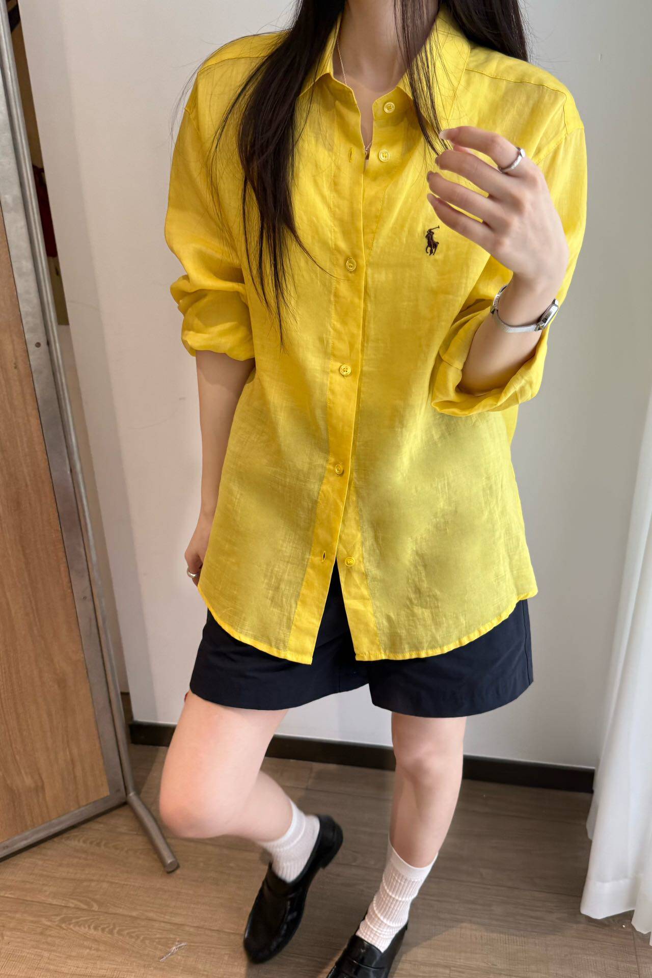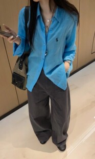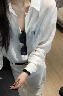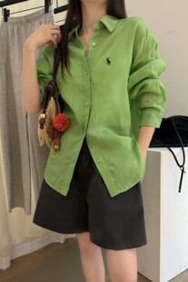 女 舒适休闲衬衫 纤贝思Q1051翻领纯色小马刺绣基础款 亚麻水洗长袖