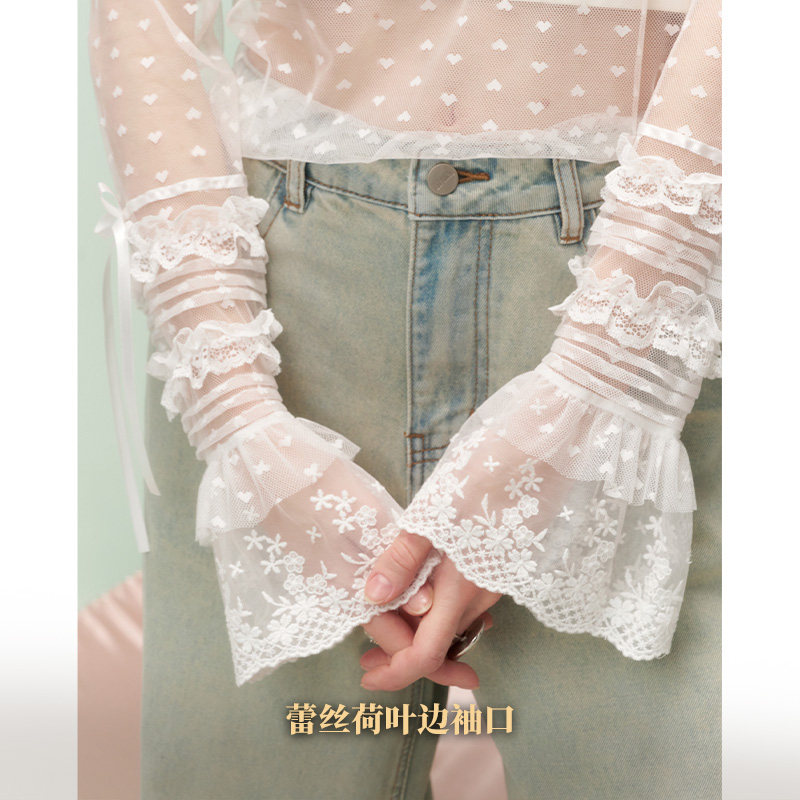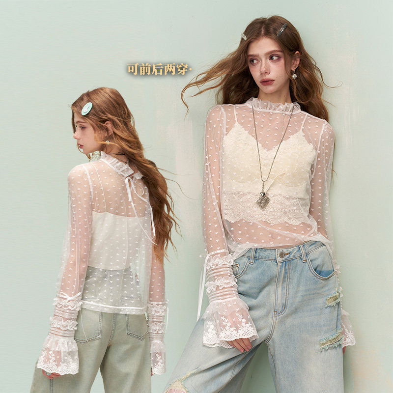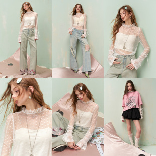 女2026早春新款 波点荷叶边蕾丝衫 叠穿内搭纯欲上衣 口袋法式 妖精