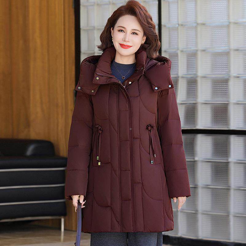 中老年加厚暖保冬装 冬新款 外套 中年白羽鹅绒服8503绒女中长款 正品