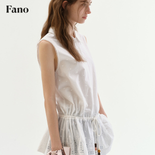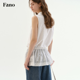 100棉法式 衬衫 氧气感小衫 镂空绣花收腰无袖 女2026春新款 范洛Fano