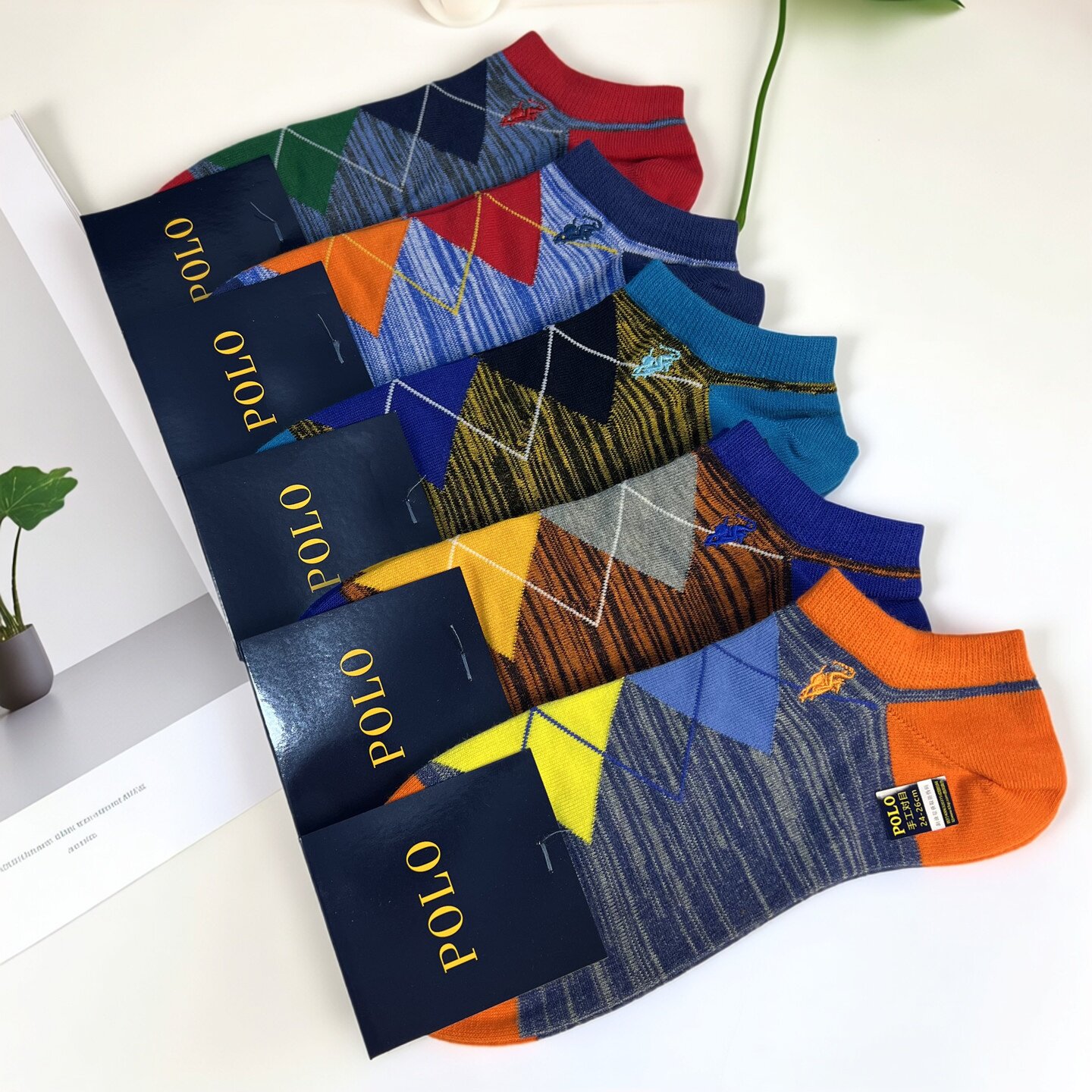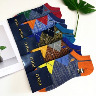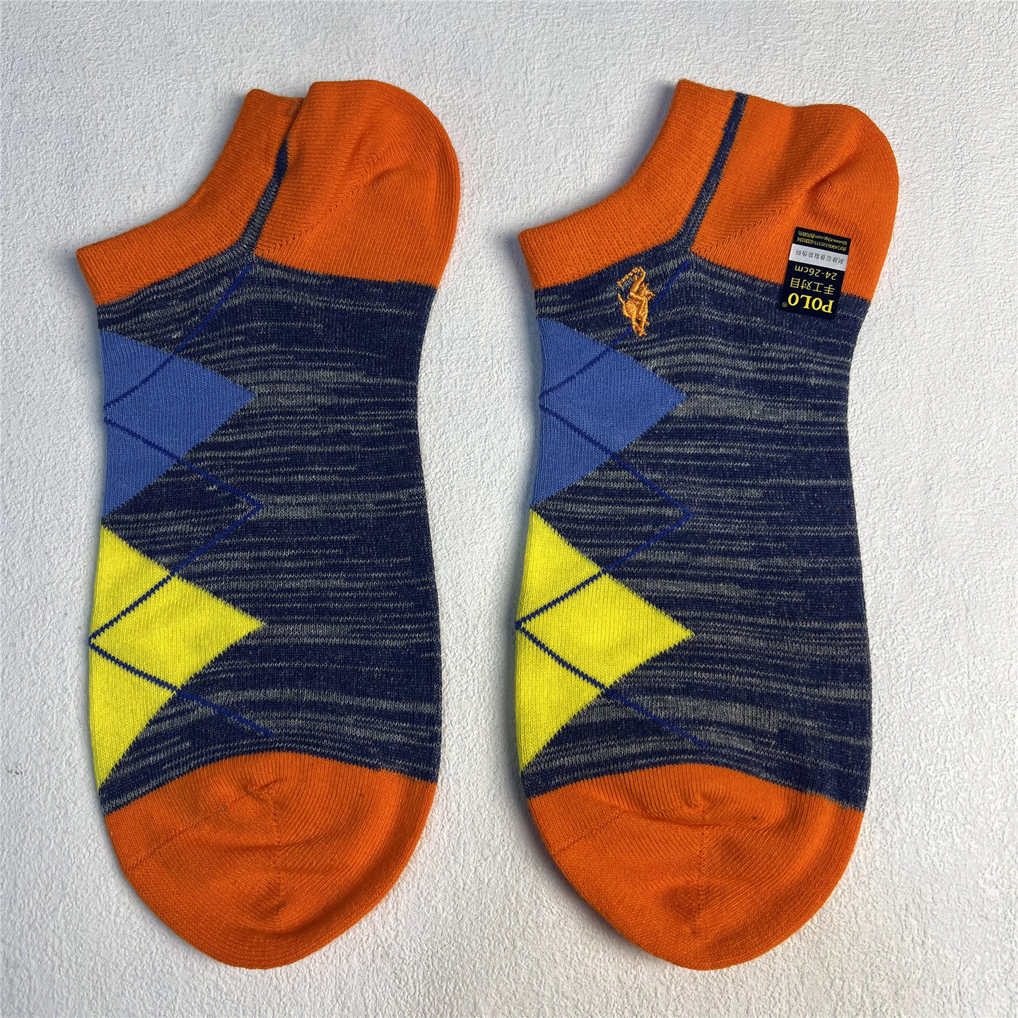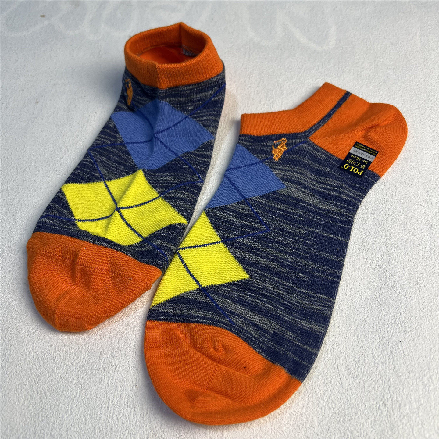 特价 POLO袜子男纯棉春夏彩色菱形格潮流短袜无骨休闲防臭船袜8511