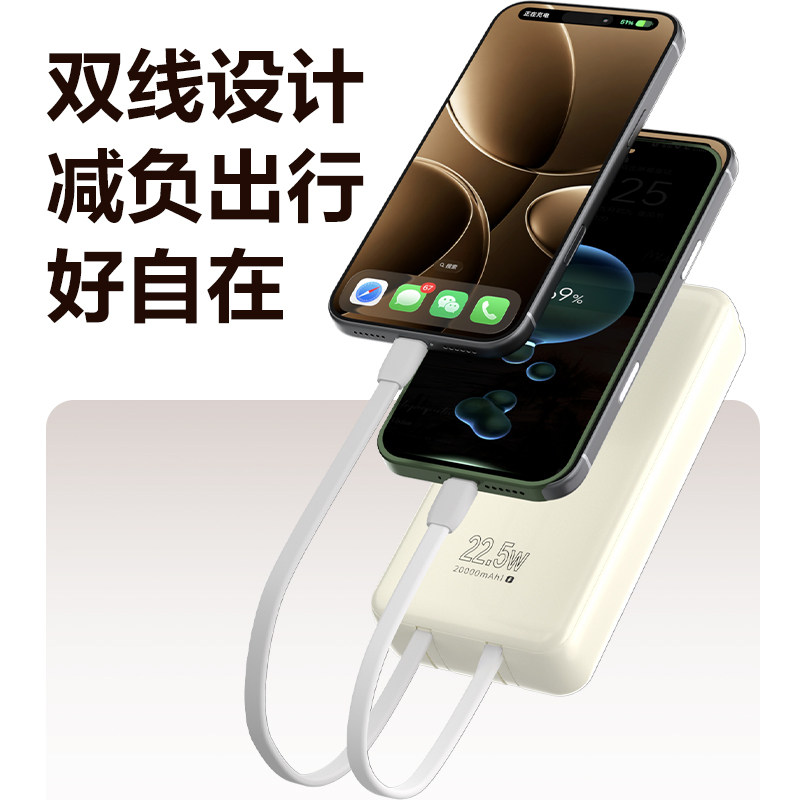 20000 小米充电宝自带线快充版 33W双向快充小巧超大容量便携移动电源适用于华为小米苹果17手机 3C认证