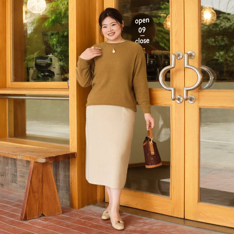 女胖mm200斤轻奢高级感毛衣 宽松圆领羊绒衫 美丽客栈高端大码 女装