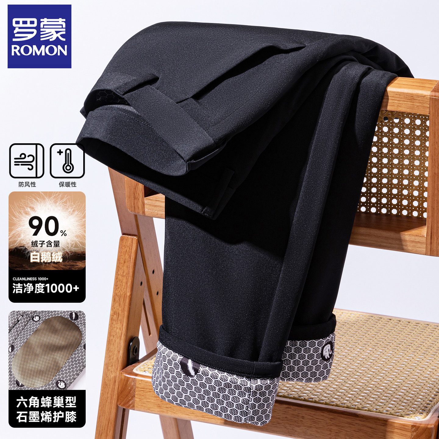 鹅绒量31g 棉裤 罗蒙高端冲锋羽绒裤 外穿加厚西装 子老年人 男款