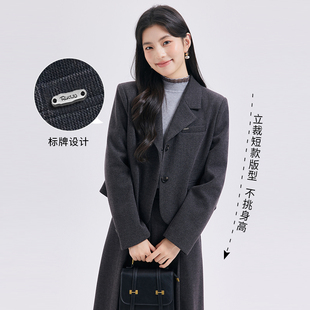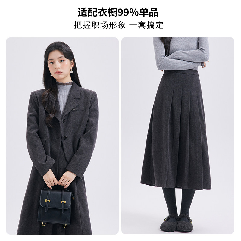 加厚西服套裙 女高级感大学生面试答辩冬季 达佳诗灰色毛呢西装 套装