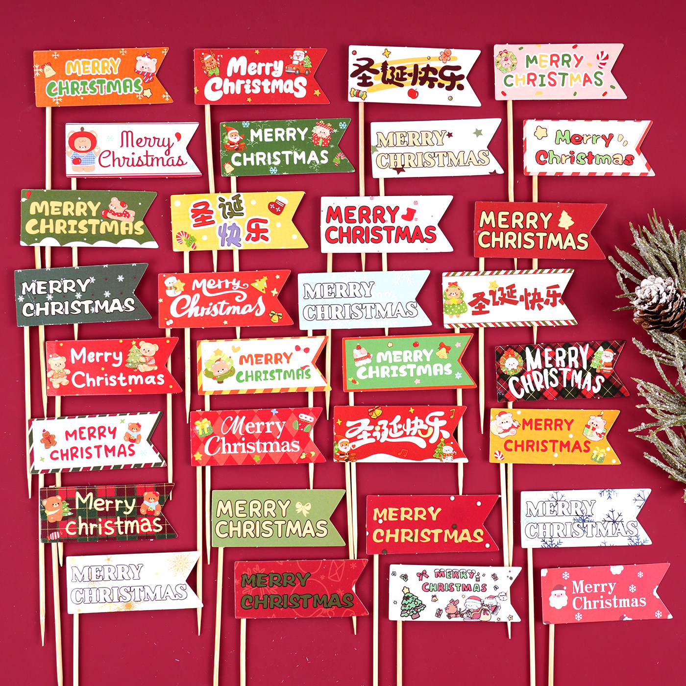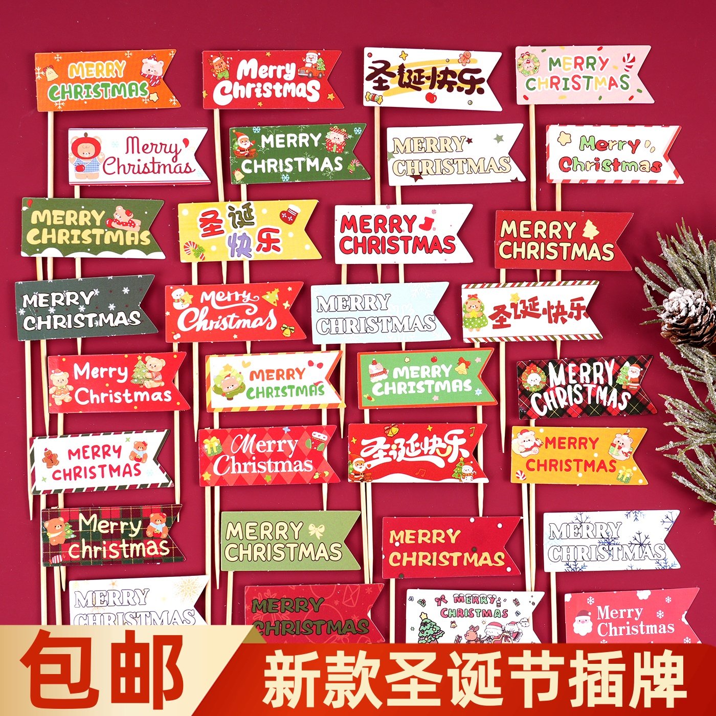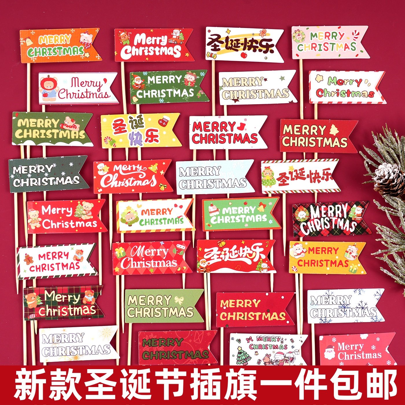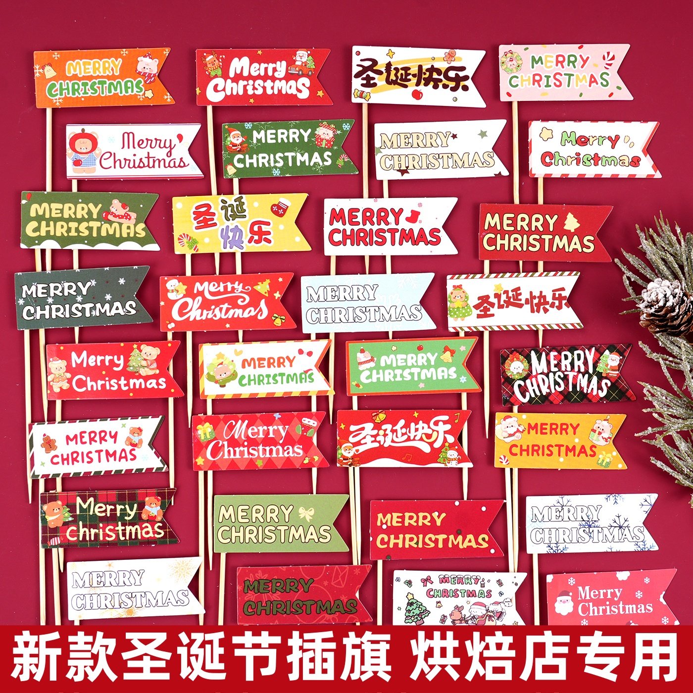 2026圣诞节快乐英文插旗蛋糕装 扮 饰圣诞老人小熊插件节日烘焙装