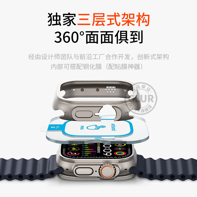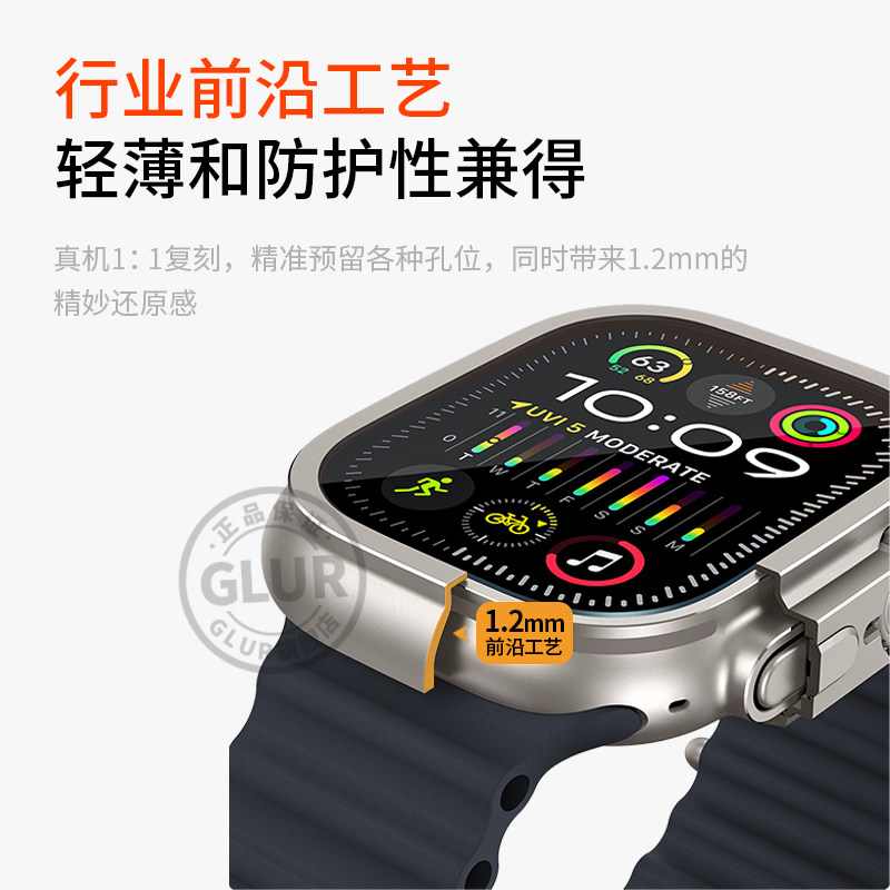 Ultra3苹果手表保护壳钛色合金ultra2保护套iwatch金属壳防摔耐磨49mm带钢化膜防水 适用AppleWatch GLUR
