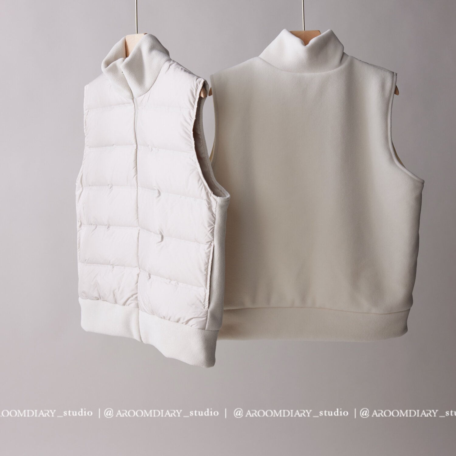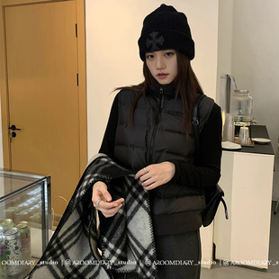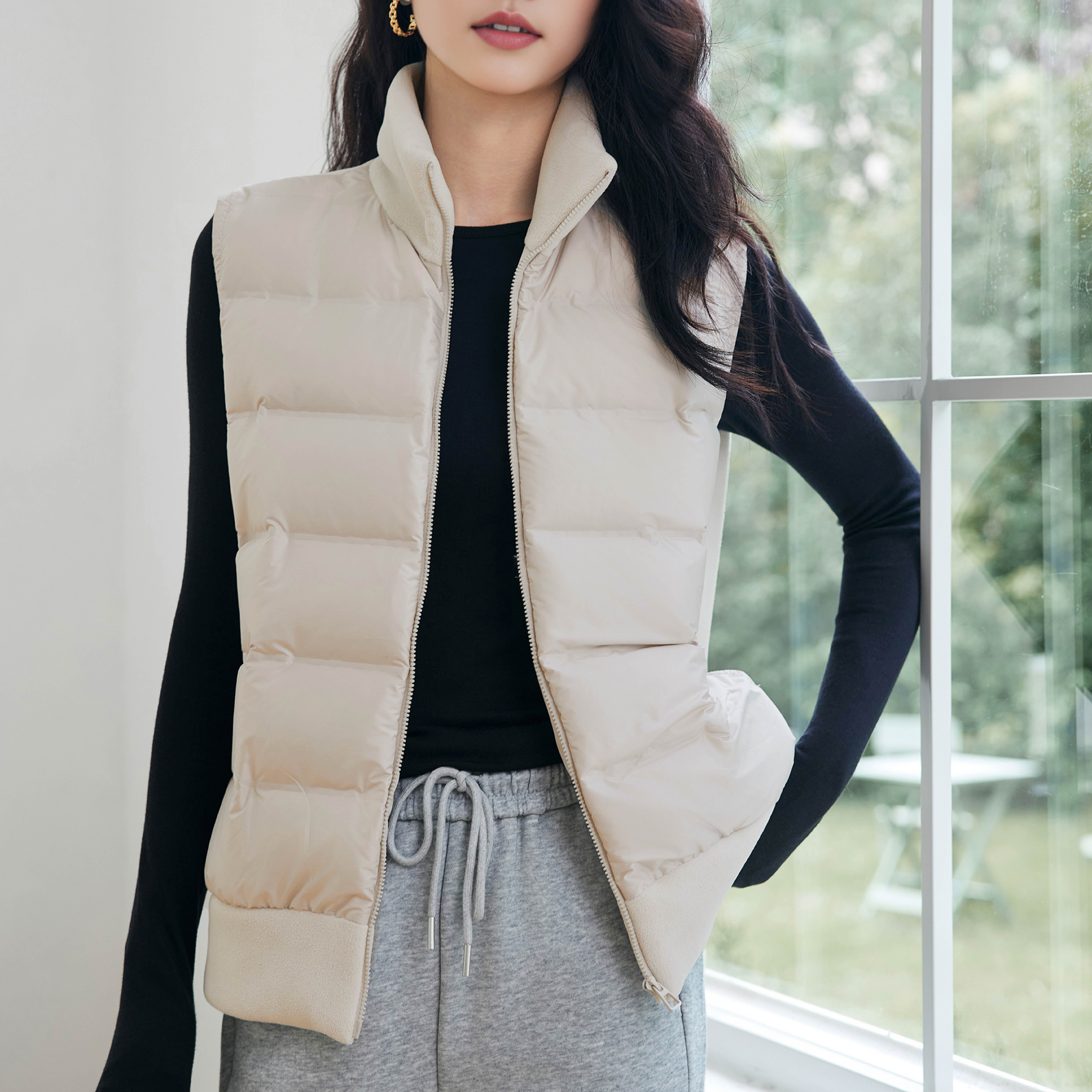 纸片人羽绒马甲 保暖背心女立领拉链拼接摇粒绒 90匈牙利白鸭绒
