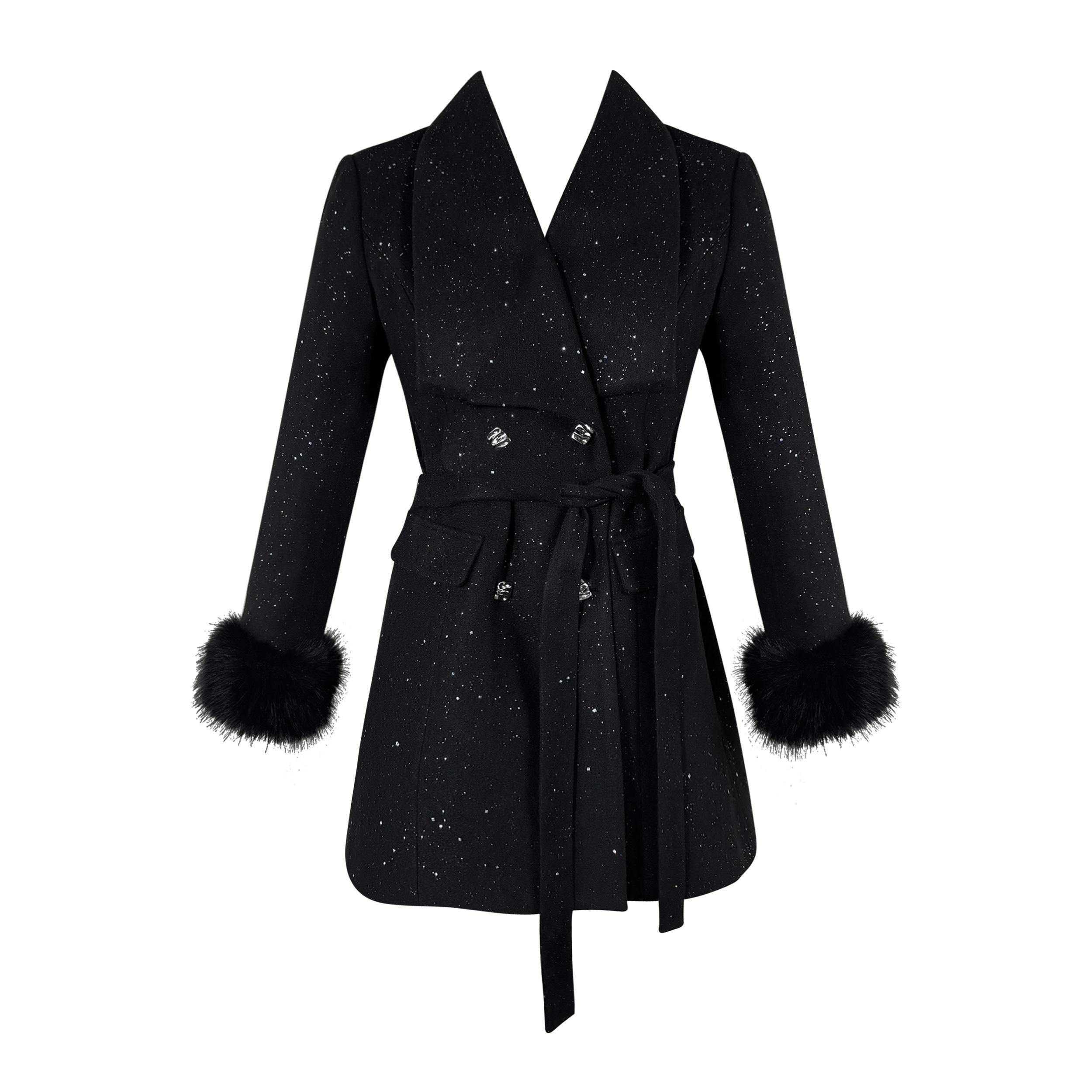 胖mm特大码 毛呢外套 黑色赫本风呢子大衣女秋冬高级感慵懒风中长款