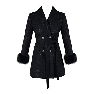 珍珍家 毛呢外套冬 又见金敏喜90绵羊毛5牦牛气质双面呢大衣中长款