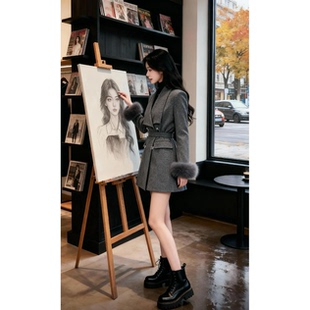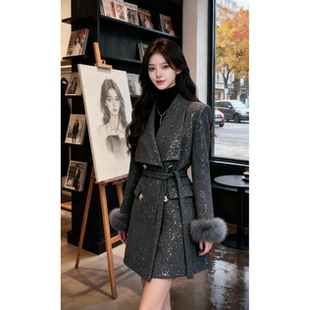 慵懒风双面羊毛大衣女中长款 灰色毛呢外套高级感