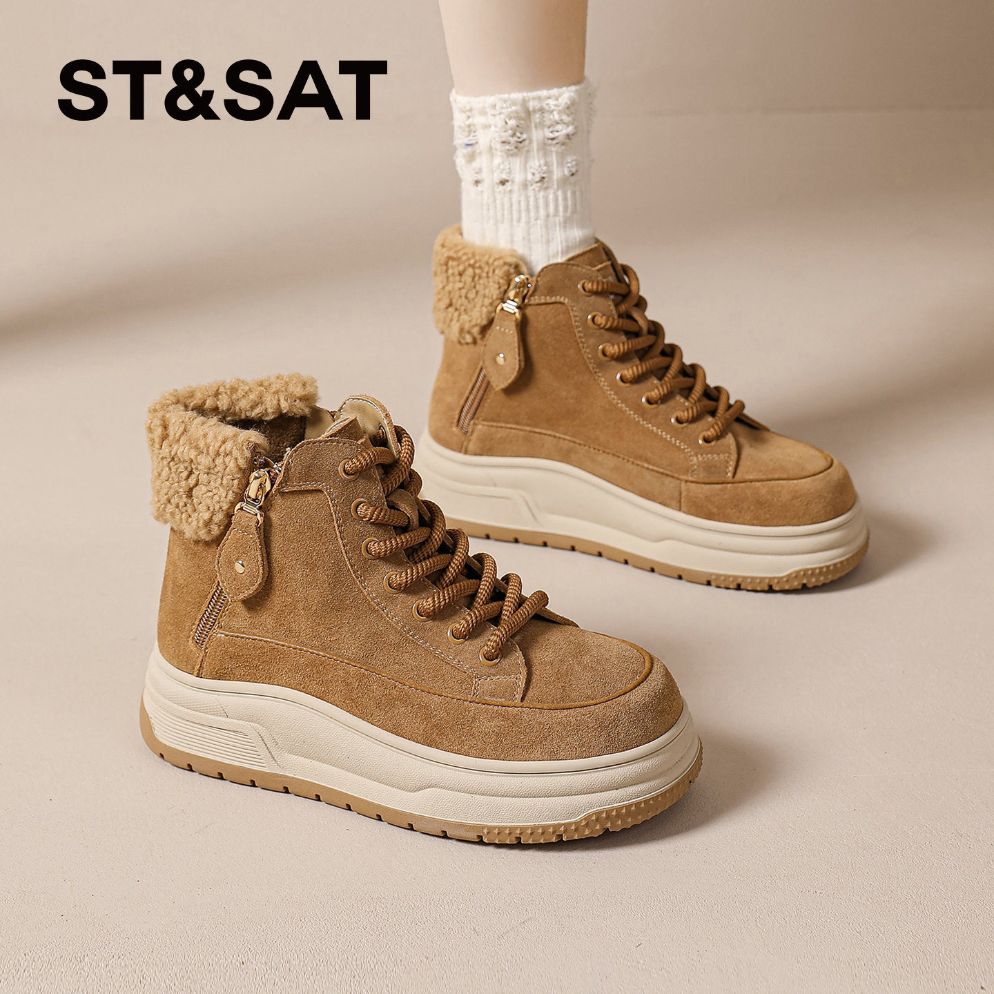 2025新款 厚底棉鞋 冬季 高帮爆款 加绒加厚保暖板鞋 星期六雪地靴女款