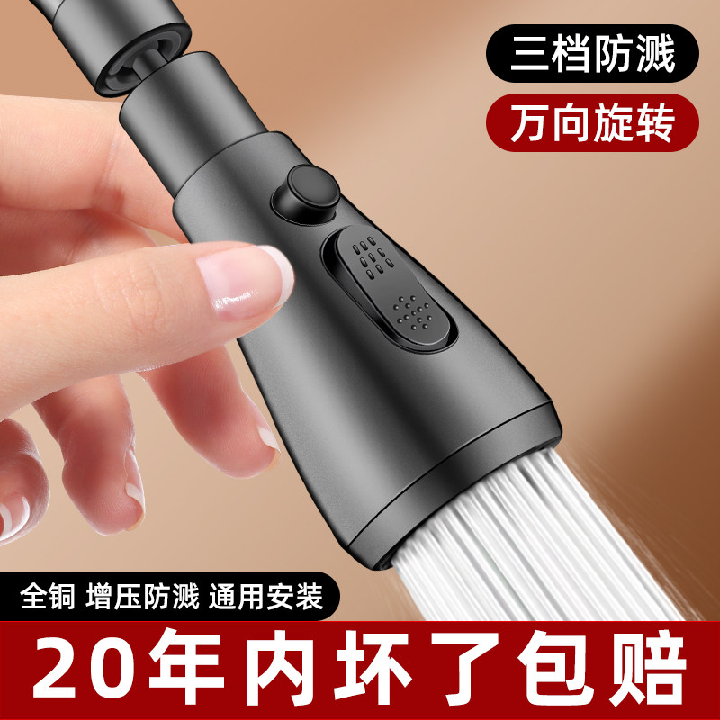 厨房水龙头延伸器洗菜盆防溅神器万向接头冷热全铜防溅头花洒黑色