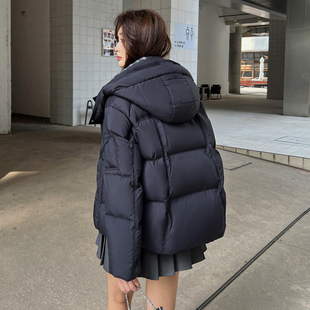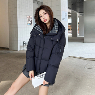 雪中飞2025冬新款 女士羽绒服拼接撞色美拉德色系泡芙面包服外套