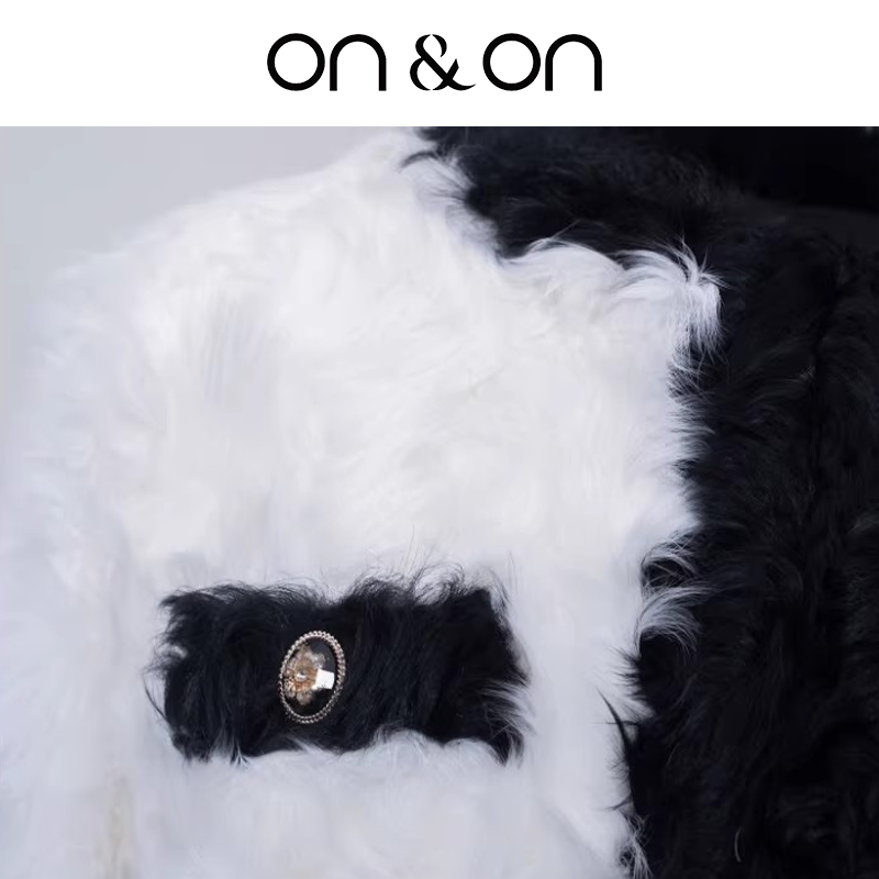 轻奢摩登拼接黑白拼色绵羊毛羊羔毛外套 闲鱼 ON&ON 安乃安