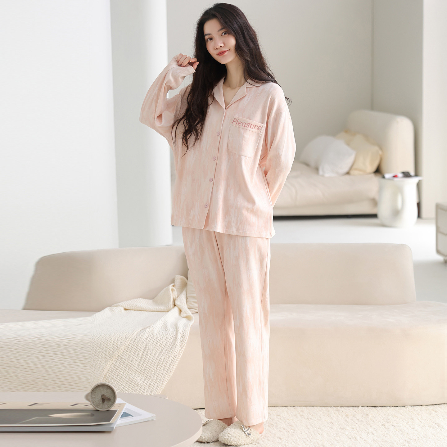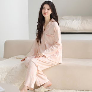 纯棉长袖 秋春季 女士英文家居服秋冬天 2026新款 芬腾可安睡衣秋女款
