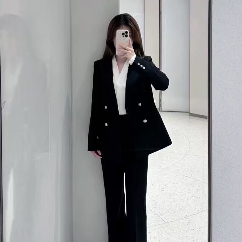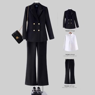 微喇叭裤 黑色西装 高级感面试职业西服套装 2025春秋新款 外套女正装