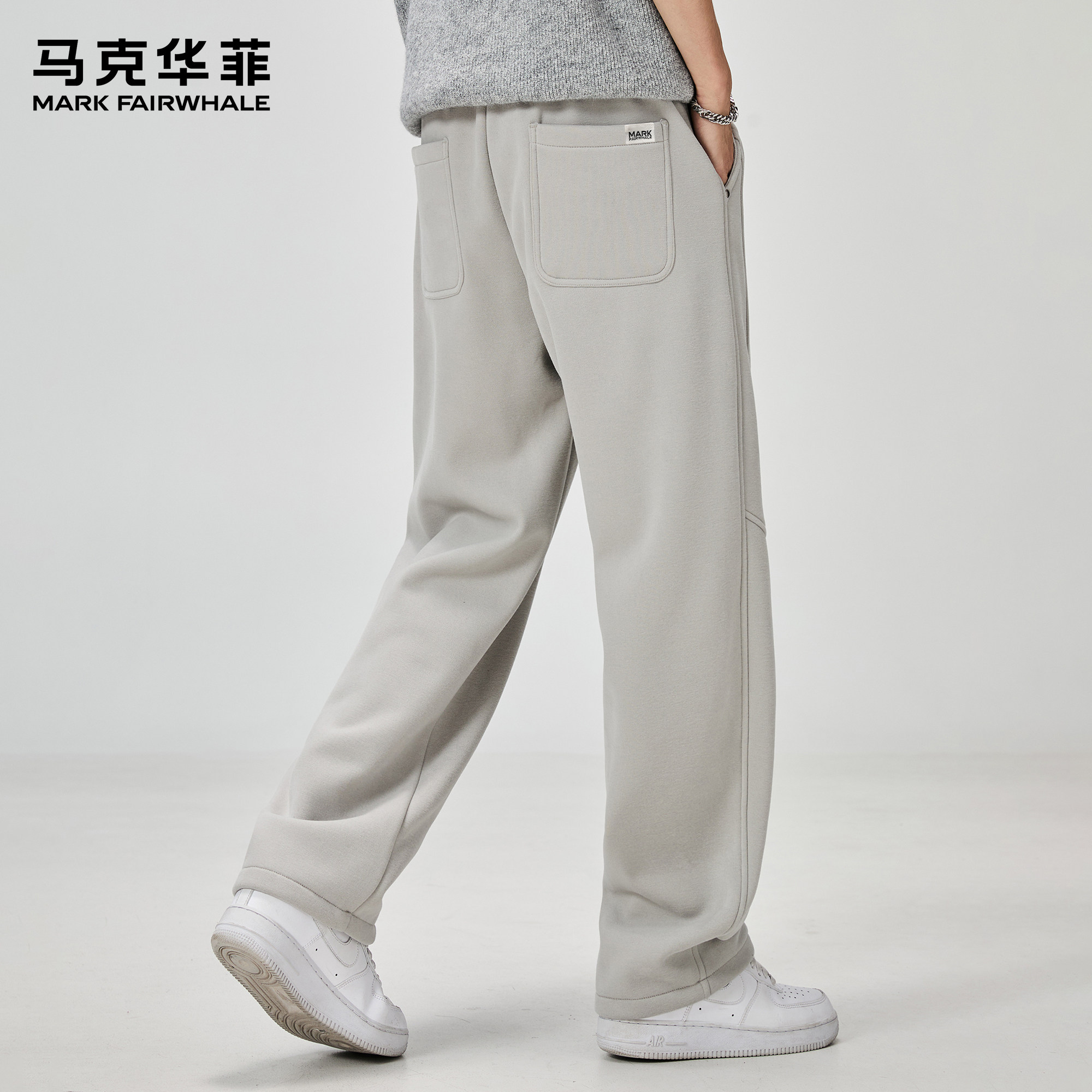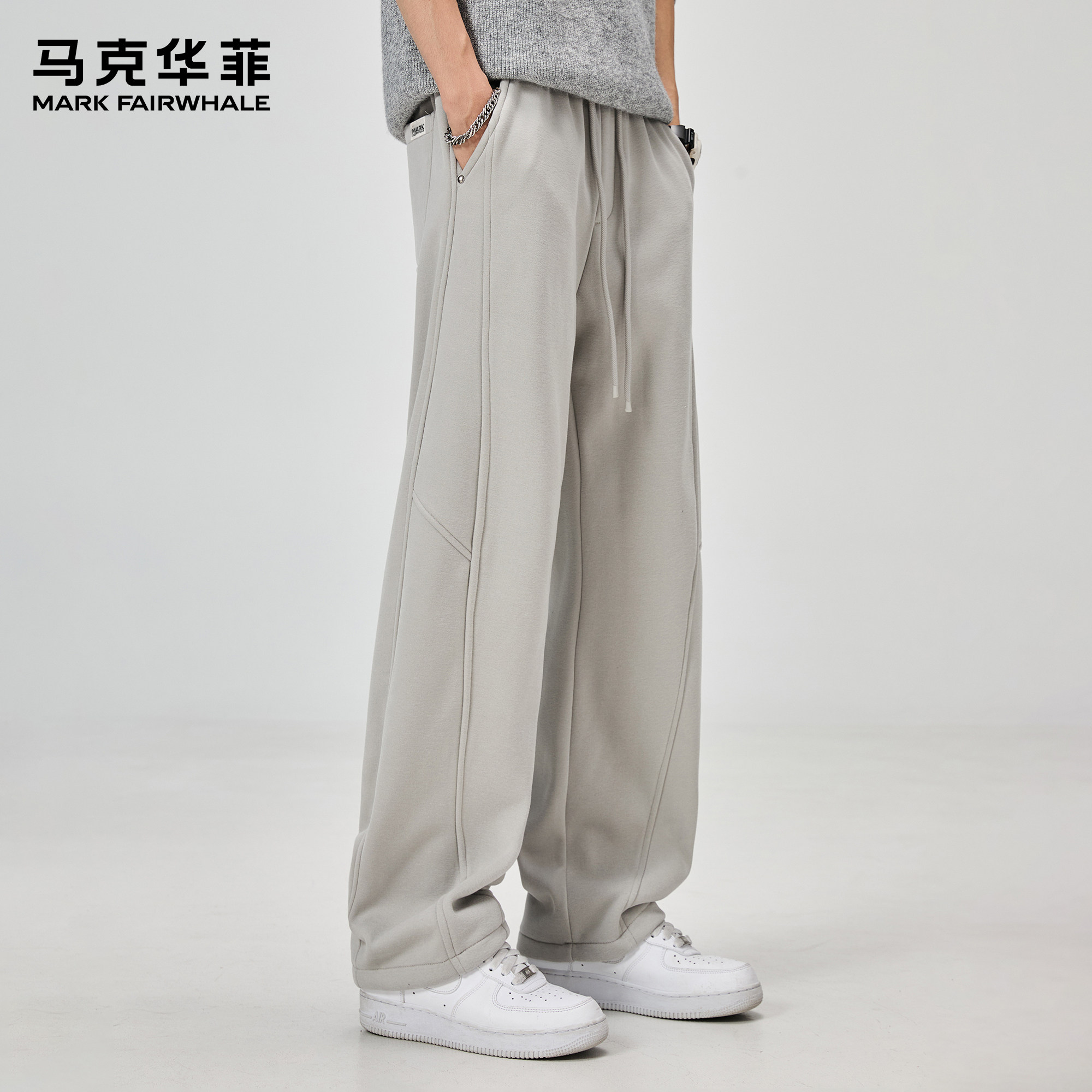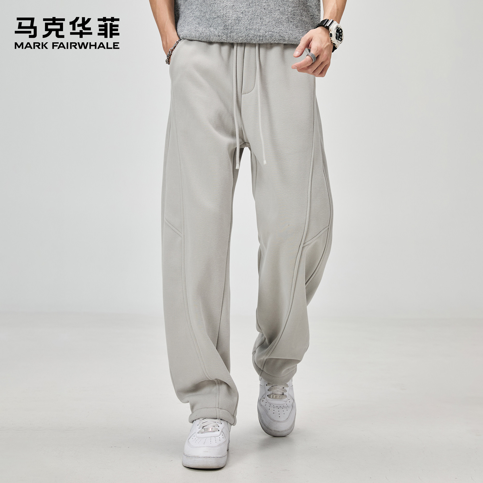 潮牌高级感加绒加厚拼接抽绳宽松弯刀裤 秋冬新款 男士 马克华菲卫裤
