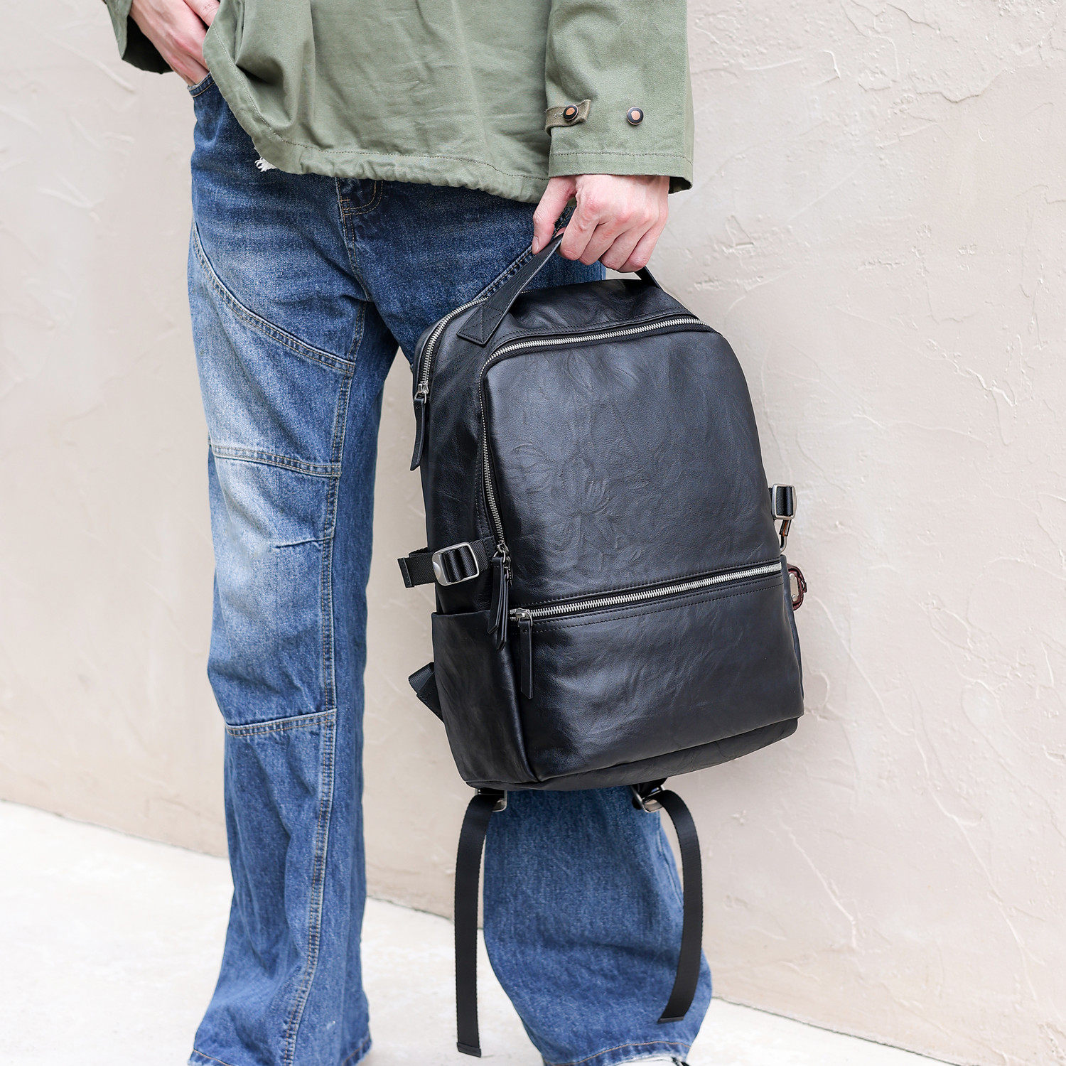 玩爷真皮男士 双肩包大容量书包商务通勤出差包头层牛皮电脑背包